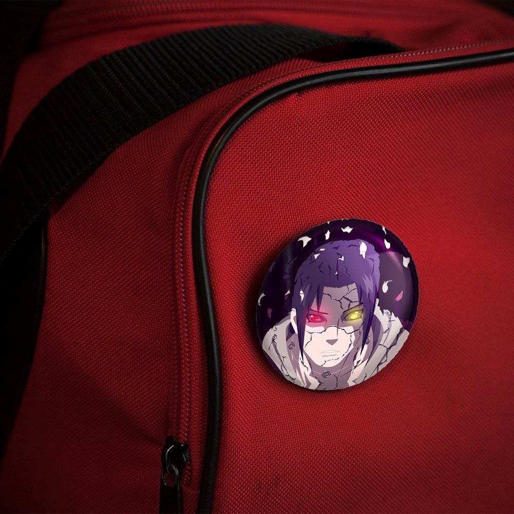 پیکسل 44 میلی متری اوچیها ایتاچی انیمه ناروتو Naruto خندالو با روکش سلفون حرارتی مات مخملی ضدخش و قطعه پشتی رنگی تولید شده است.پلاستیکی پشت پیکسل با سوزن یک تکه ثابت و بدون لغزش و جا به جایی، ایستایی بسیار بهتری نسبت به پشتی فلزی پیکسل دارند که این مهم در تولید این محصول نیز رعایت شده است.