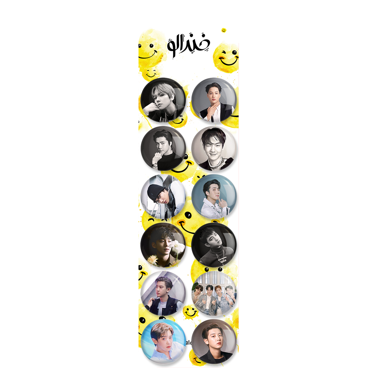 پک 12 عددی پیکسل خندالو طرح اکسو EXO با روکش سلفون حرارتی براق ضدخش و قطعه پشتی رنگی تولید شده است. قطعات پشتی از میان 6 رنگ سفید، مشکی، صورتی، زرد، آبی و قرمز که با توجه به نوع و رنگبندی طرح روی پیکسل انتخاب شده اند تولید می شود و در هر بسته بندی مطابق عکس محصول می باشد. قطعات پلاستیکی پشت پیکسل با سوزن یک تکه ثابت و بدون لغزش و جا به جایی، ایستایی بسیار بهتری نسبت به پشتی فلزی پیکسل دارند که این مهم در تولید این محصول نیز رعایت شده است.