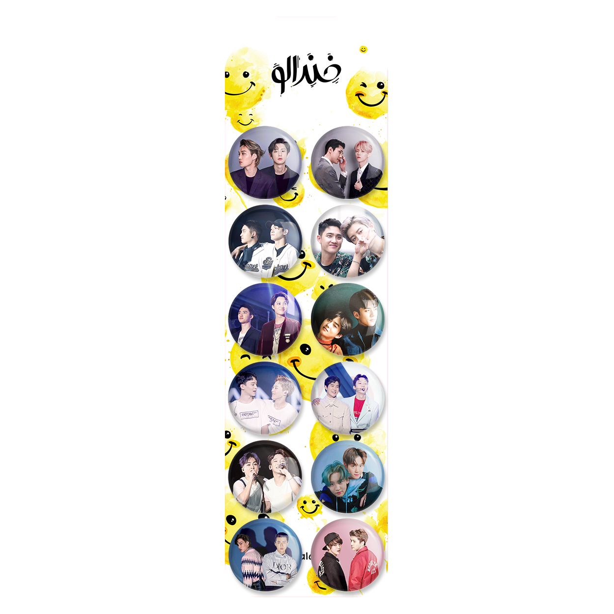 پک 12 عددی پیکسل خندالو طرح اکسو (EXO) با روکش سلفون حرارتی براق ضدخش و قطعه پشتی رنگی تولید شده است. قطعات پشتی از میان 6 رنگ سفید، مشکی، صورتی، زرد، آبی و قرمز که با توجه به نوع و رنگبندی طرح روی پیکسل انتخاب شده اند تولید می شود و در هر بسته بندی مطابق عکس محصول می باشد. قطعات پلاستیکی پشت پیکسل با سوزن یک تکه ثابت و بدون لغزش و جا به جایی، ایستایی بسیار بهتری نسبت به پشتی فلزی پیکسل دارند که این مهم در تولید این محصول نیز رعایت شده است.