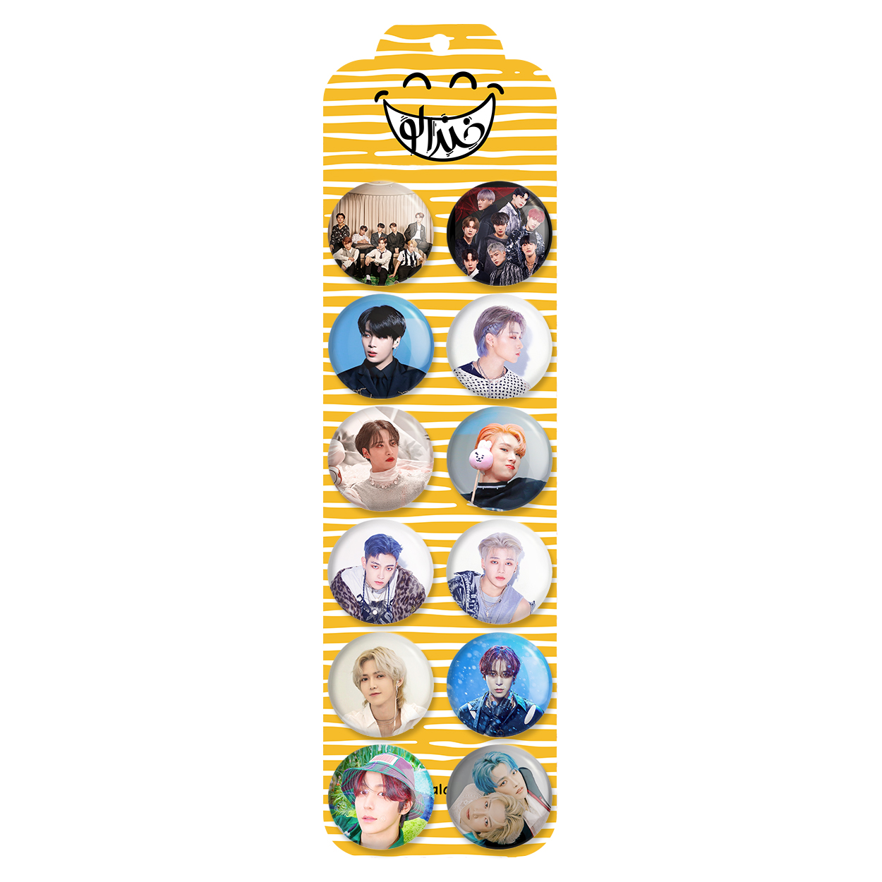 پک 12 عددی پیکسل خندالو طرح ایتیز (Ateez) با روکش سلفون حرارتی براق ضدخش و قطعه پشتی رنگی تولید شده است. قطعات پشتی از میان 6 رنگ سفید، مشکی، صورتی، زرد، آبی و قرمز که با توجه به نوع و رنگبندی طرح روی پیکسل انتخاب شده اند تولید می شود و در هر بسته بندی مطابق عکس محصول می باشد. قطعات پلاستیکی پشت پیکسل با سوزن یک تکه ثابت و بدون لغزش و جا به جایی، ایستایی بسیار بهتری نسبت به پشتی فلزی پیکسل دارند که این مهم در تولید این محصول نیز رعایت شده است. چاپ پیکسل طرح ایتیز (Ateez) بسته ۱۲ عددی نیز با دستگاه های استاندارد و با بهترین سطح کیفی صورت گرفته و طرح با شفافیتی مثال زدنی و با سلفونی بدون شکست نور بر روی پیکسل نقش بسته است.