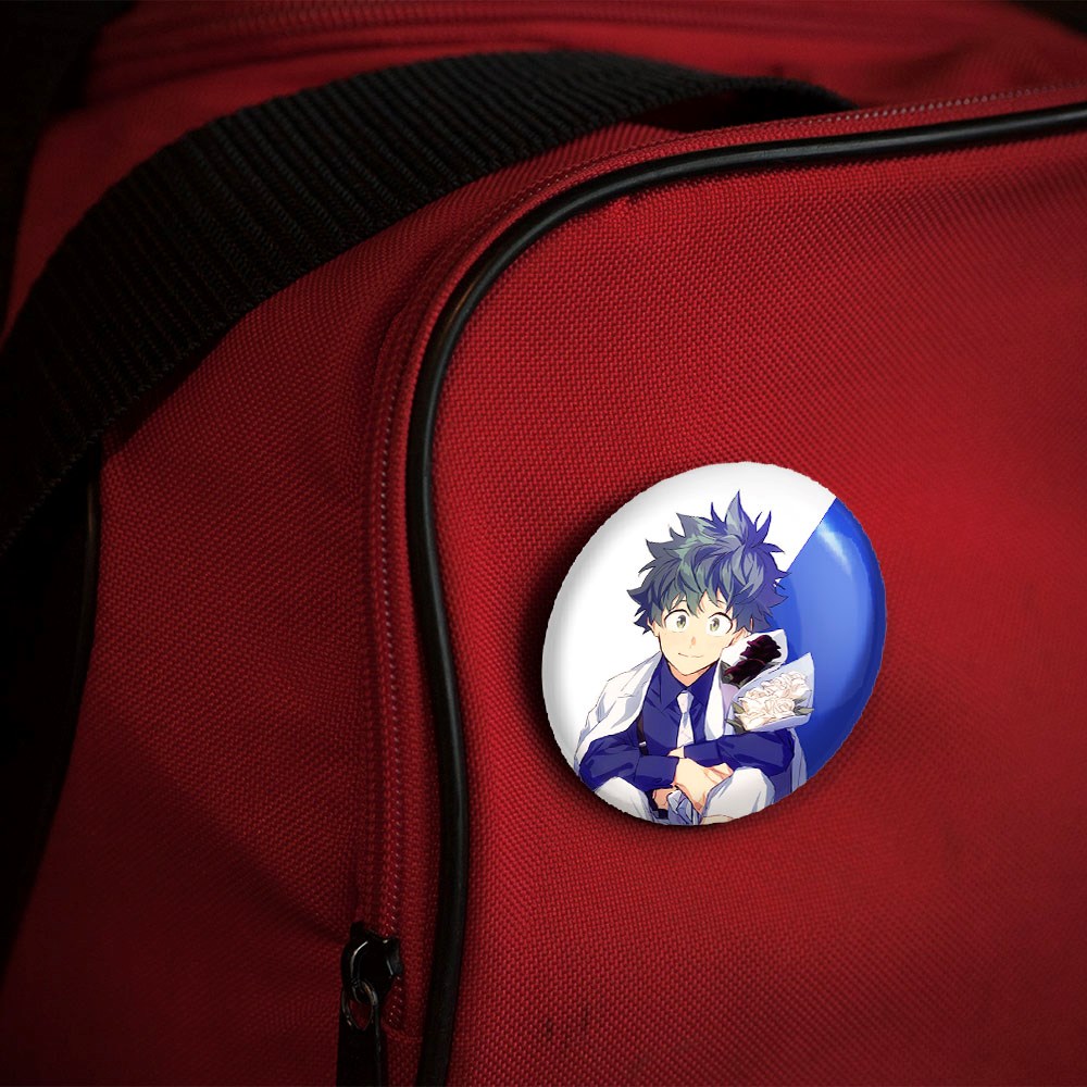 پیکسل 44 میلی متری ایزوکو میدوریا انیمه آکادمی قهرمان من My Hero Academia خندالو با روکش سلفون حرارتی مات مخملی ضدخش و قطعه پشتی رنگی تولید شده است.پلاستیکی پشت پیکسل با سوزن یک تکه ثابت و بدون لغزش و جا به جایی، ایستایی بسیار بهتری نسبت به پشتی فلزی پیکسل دارند که این مهم در تولید این محصول نیز رعایت شده است.