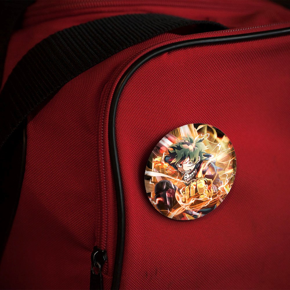 پیکسل 44 میلی متری ایزوکو میدوریا انیمه آکادمی قهرمان من My Hero Academia خندالو با روکش سلفون حرارتی مات مخملی ضدخش و قطعه پشتی رنگی تولید شده است.پلاستیکی پشت پیکسل با سوزن یک تکه ثابت و بدون لغزش و جا به جایی، ایستایی بسیار بهتری نسبت به پشتی فلزی پیکسل دارند که این مهم در تولید این محصول نیز رعایت شده است.