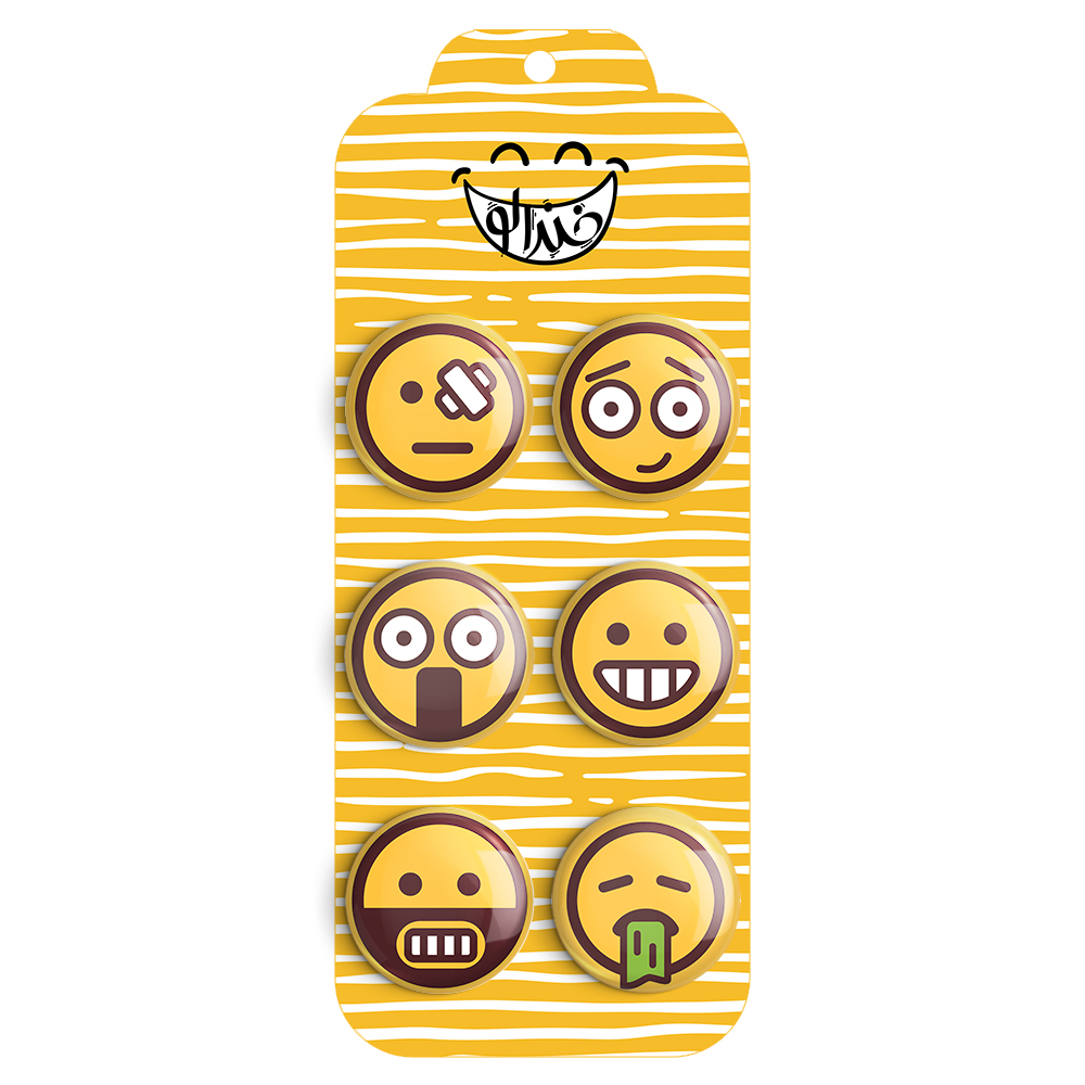 مجموعه 6 عددی پیکسل خندالو طرح ایموجی (Emoji) با روکش سلفون حرارتی براق ضدخش و قطعه پشتی رنگی تولید شده است. قطعات پشتی از میان 6 رنگ سفید، مشکی، صورتی، زرد، آبی و قرمز که با توجه به نوع و رنگبندی طرح روی پیکسل انتخاب شده اند تولید می شود و در هر بسته بندی مطابق عکس محصول می باشد.
