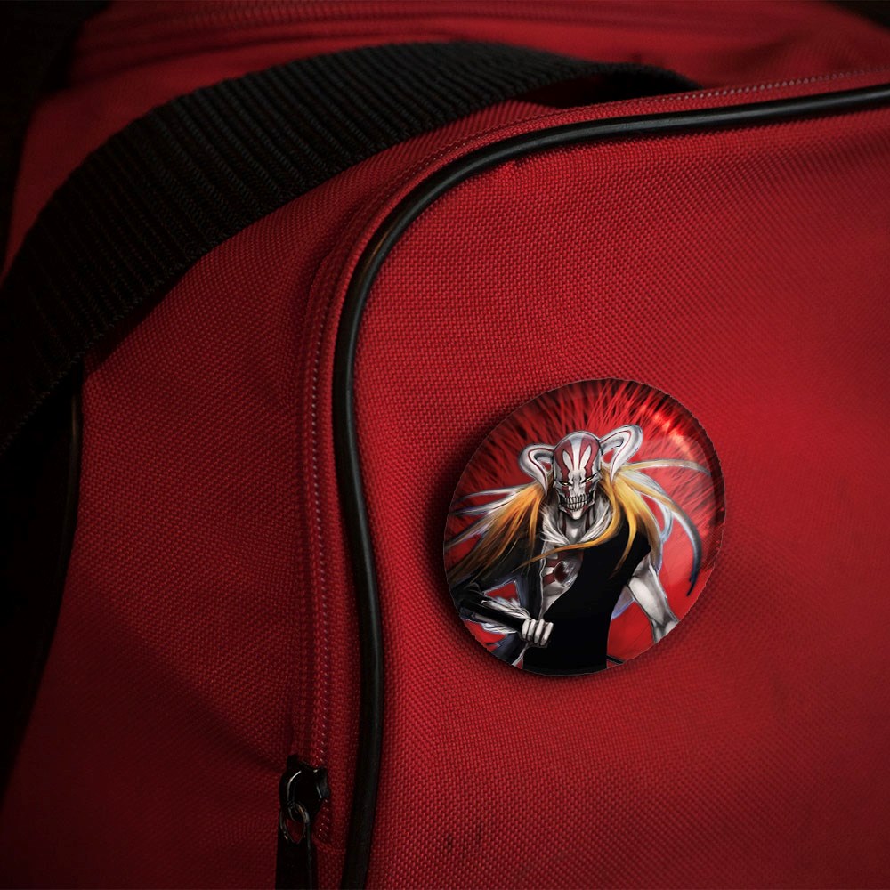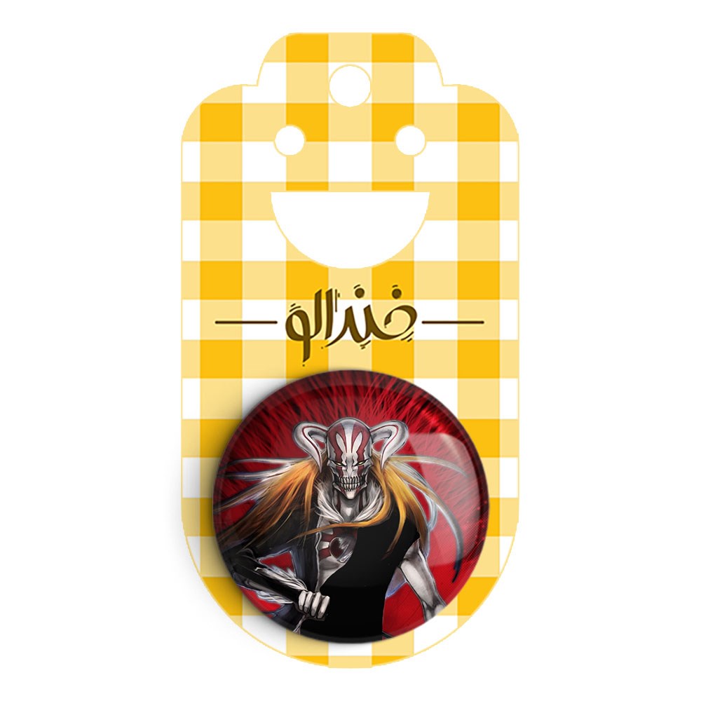 پیکسل 44 میلی متری ایچیگو انیمه بلیچ Bleach خندالو با روکش سلفون حرارتی مات مخملی ضدخش و قطعه پشتی رنگی تولید شده است.پلاستیکی پشت پیکسل با سوزن یک تکه ثابت و بدون لغزش و جا به جایی، ایستایی بسیار بهتری نسبت به پشتی فلزی پیکسل دارند که این مهم در تولید این محصول نیز رعایت شده است.