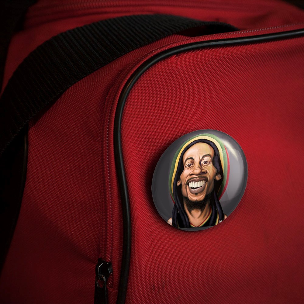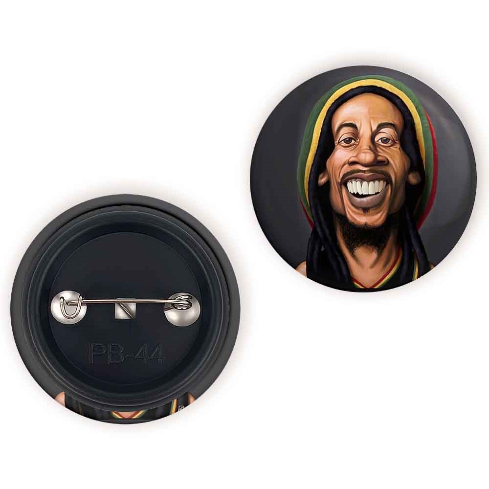 پیکسل 44 میلی متری باب مارلی Bob Marley خندالو با روکش سلفون حرارتی مات مخملی ضدخش و قطعه پشتی رنگی تولید شده است.پلاستیکی پشت پیکسل با سوزن یک تکه ثابت و بدون لغزش و جا به جایی، ایستایی بسیار بهتری نسبت به پشتی فلزی پیکسل دارند که این مهم در تولید این محصول نیز رعایت شده است.
