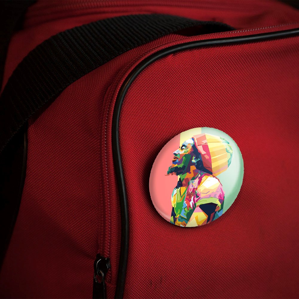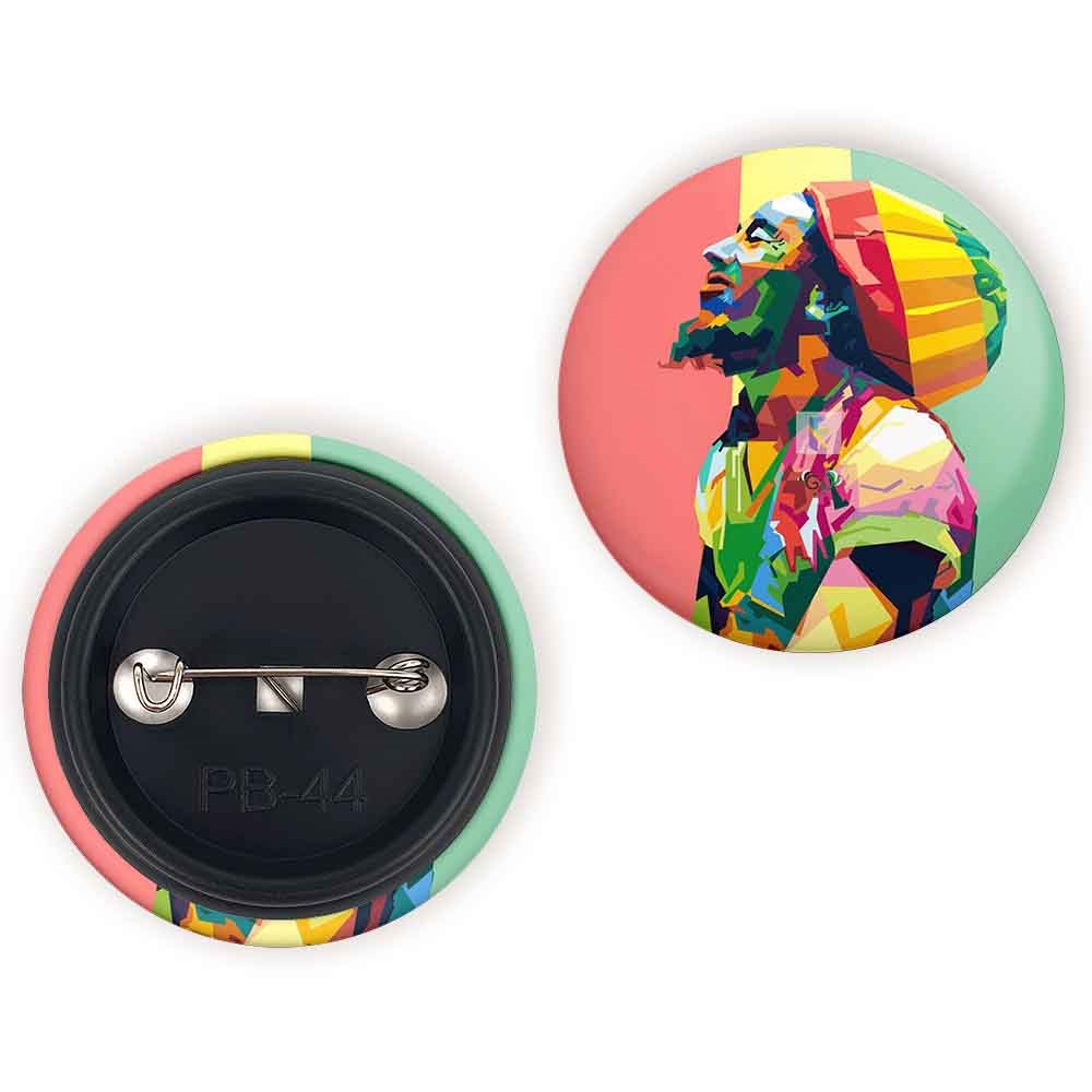 پیکسل 44 میلی متری باب مارلی Bob Marley خندالو با روکش سلفون حرارتی مات مخملی ضدخش و قطعه پشتی رنگی تولید شده است.پلاستیکی پشت پیکسل با سوزن یک تکه ثابت و بدون لغزش و جا به جایی، ایستایی بسیار بهتری نسبت به پشتی فلزی پیکسل دارند که این مهم در تولید این محصول نیز رعایت شده است.