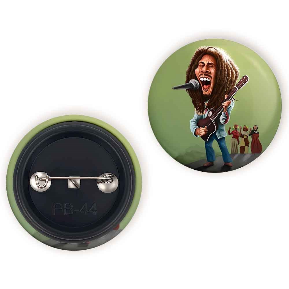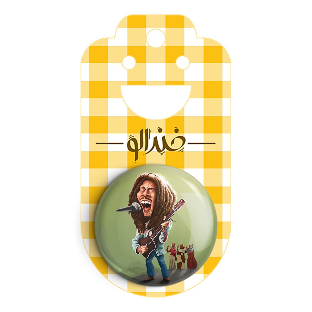 پیکسل 44 میلی متری باب مارلی Bob Marley خندالو با روکش سلفون حرارتی مات مخملی ضدخش و قطعه پشتی رنگی تولید شده است.پلاستیکی پشت پیکسل با سوزن یک تکه ثابت و بدون لغزش و جا به جایی، ایستایی بسیار بهتری نسبت به پشتی فلزی پیکسل دارند که این مهم در تولید این محصول نیز رعایت شده است.