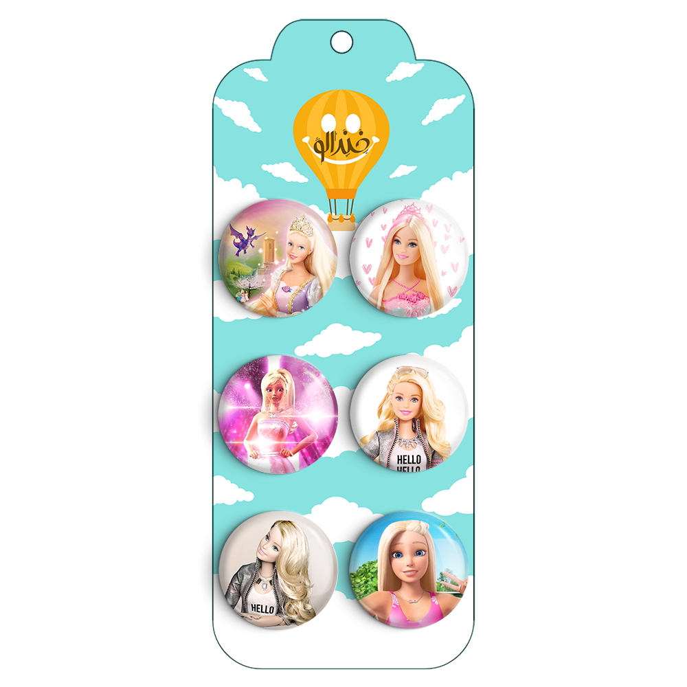 مجموعه 6 عددی پیکسل خندالو طرح باربی (Barbie) با روکش سلفون حرارتی براق ضدخش و قطعه پشتی رنگی تولید شده است. قطعات پشتی از میان 6 رنگ سفید، مشکی، صورتی، زرد، آبی و قرمز که با توجه به نوع و رنگبندی طرح روی پیکسل انتخاب شده اند تولید می شود و در هر بسته بندی مطابق عکس محصول می باشد.