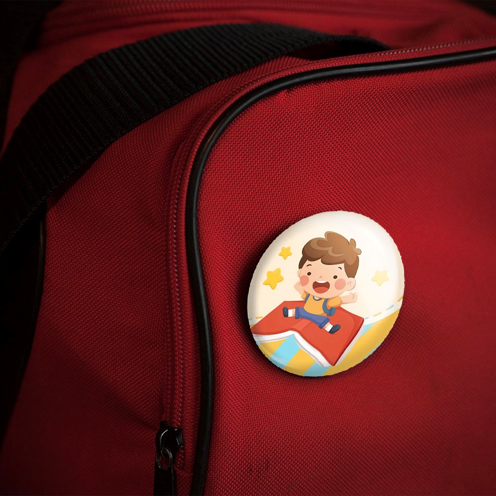 پیکسل 44 میلی متری بازگشت به مدرسه خندالو با روکش سلفون حرارتی مات مخملی ضدخش و قطعه پشتی رنگی تولید شده است.پلاستیکی پشت پیکسل با سوزن یک تکه ثابت و بدون لغزش و جا به جایی، ایستایی بسیار بهتری نسبت به پشتی فلزی پیکسل دارند که این مهم در تولید این محصول نیز رعایت شده است.