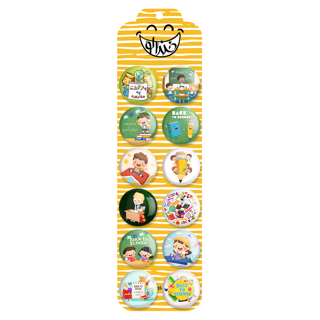 پک 12 عددی پیکسل خندالو طرح بازگشت به مدرسه با روکش سلفون حرارتی براق ضدخش و قطعه پشتی رنگی تولید شده است. قطعات پشتی از میان 6 رنگ سفید، مشکی، صورتی، زرد، آبی و قرمز که با توجه به نوع و رنگبندی طرح روی پیکسل انتخاب شده اند تولید می شود و در هر بسته بندی مطابق عکس محصول می باشد. قطعات پلاستیکی پشت پیکسل با سوزن یک تکه ثابت و بدون لغزش و جا به جایی، ایستایی بسیار بهتری نسبت به پشتی فلزی پیکسل دارند که این مهم در تولید این محصول نیز رعایت شده است.
