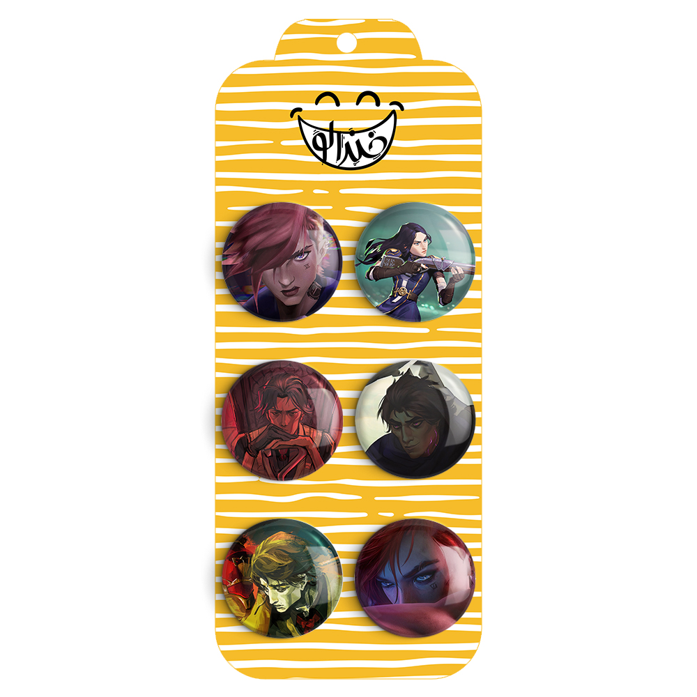 مجموعه 6 عددی پیکسل خندالو طرح بازی آرکین (Arcane) با روکش سلفون حرارتی براق ضدخش و قطعه پشتی رنگی تولید شده است. قطعات پشتی از میان 6 رنگ سفید، مشکی، صورتی، زرد، آبی و قرمز که با توجه به نوع و رنگبندی طرح روی پیکسل انتخاب شده اند تولید می شود و در هر بسته بندی مطابق عکس محصول می باشد.