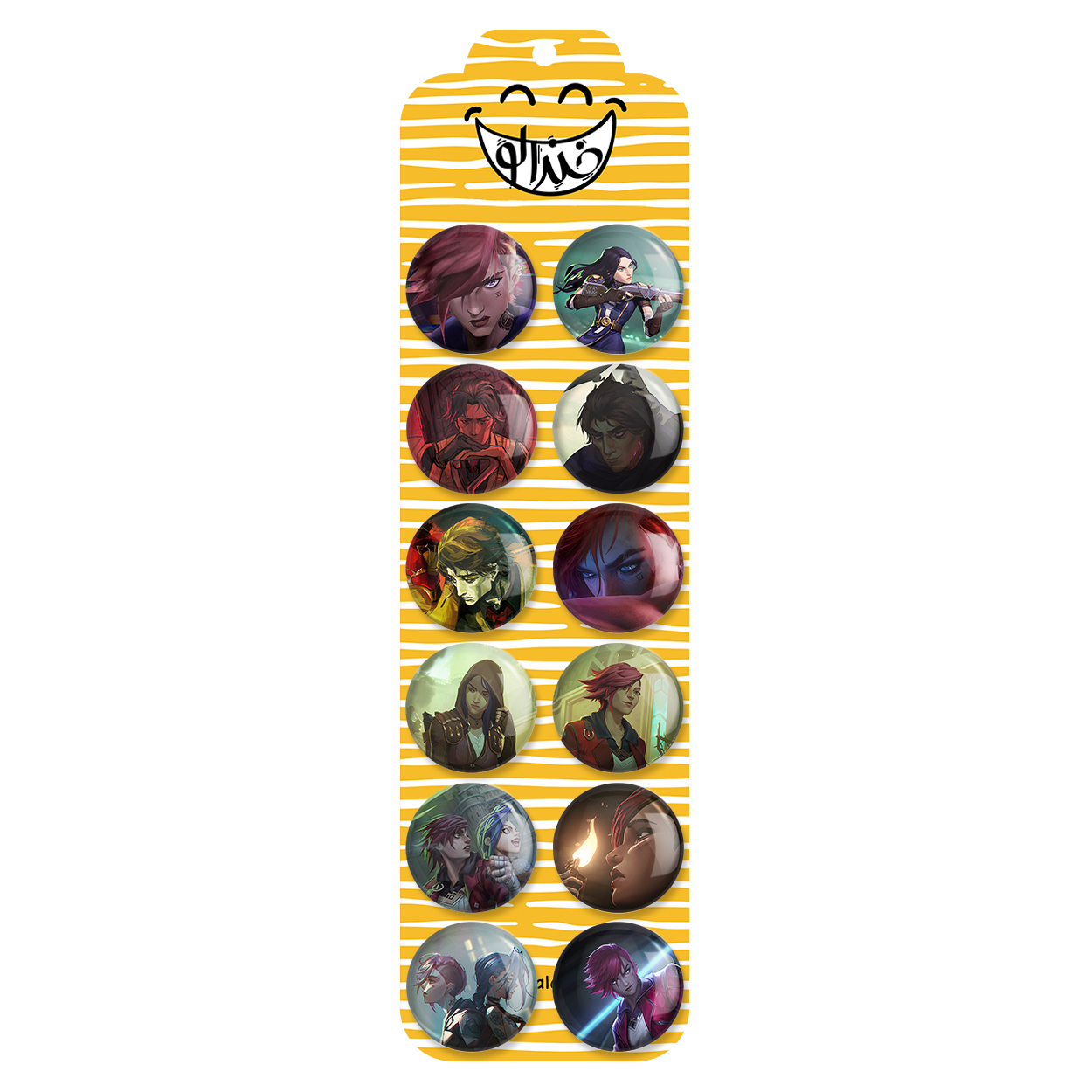 پک 12 عددی پیکسل خندالو طرح بازی آرکین (Arcane) با روکش سلفون حرارتی براق ضدخش و قطعه پشتی رنگی تولید شده است. قطعات پشتی از میان 6 رنگ سفید، مشکی، صورتی، زرد، آبی و قرمز که با توجه به نوع و رنگبندی طرح روی پیکسل انتخاب شده اند تولید می شود و در هر بسته بندی مطابق عکس محصول می باشد. قطعات پلاستیکی پشت پیکسل با سوزن یک تکه ثابت و بدون لغزش و جا به جایی، ایستایی بسیار بهتری نسبت به پشتی فلزی پیکسل دارند که این مهم در تولید این محصول نیز رعایت شده است. چاپ پیکسل طرح بازی آرکین (Arcane) بسته ۱۲ عددی نیز با دستگاه های استاندارد و با بهترین سطح کیفی صورت گرفته و طرح با شفافیتی مثال زدنی و با سلفونی بدون شکست نور بر روی پیکسل نقش بسته است.