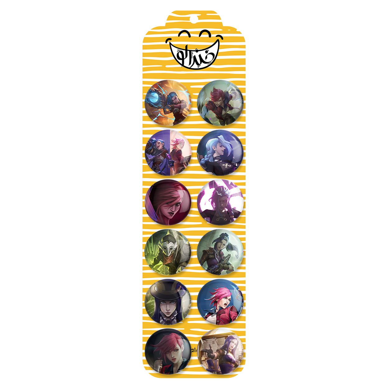پک 12 عددی پیکسل خندالو طرح بازی آرکین (Arcane) با روکش سلفون حرارتی براق ضدخش و قطعه پشتی رنگی تولید شده است. قطعات پشتی از میان 6 رنگ سفید، مشکی، صورتی، زرد، آبی و قرمز که با توجه به نوع و رنگبندی طرح روی پیکسل انتخاب شده اند تولید می شود و در هر بسته بندی مطابق عکس محصول می باشد. قطعات پلاستیکی پشت پیکسل با سوزن یک تکه ثابت و بدون لغزش و جا به جایی، ایستایی بسیار بهتری نسبت به پشتی فلزی پیکسل دارند که این مهم در تولید این محصول نیز رعایت شده است. چاپ پیکسل طرح بازی آرکین (Arcane) بسته ۱۲ عددی نیز با دستگاه های استاندارد و با بهترین سطح کیفی صورت گرفته و طرح با شفافیتی مثال زدنی و با سلفونی بدون شکست نور بر روی پیکسل نقش بسته است.