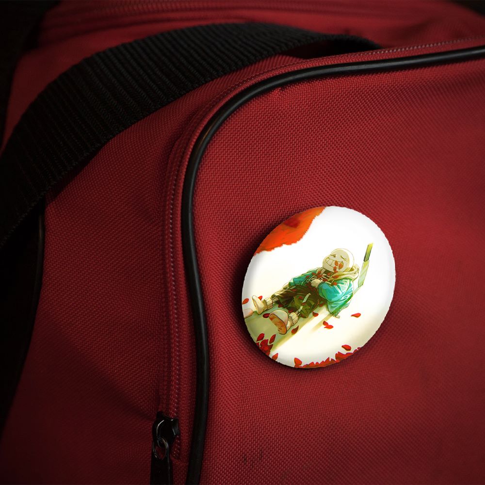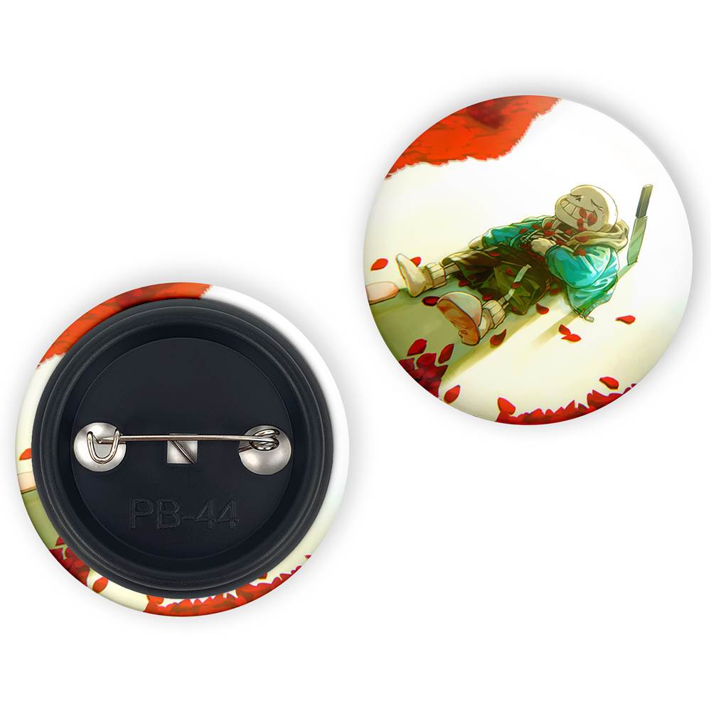 پیکسل 44 میلی متری بازی آندرتیل (Undertale)خندالو با روکش سلفون حرارتی مات مخملی ضدخش و قطعه پشتی رنگی تولید شده است. قطعات پلاستیکی پشت پیکسل با سوزن یک تکه ثابت و بدون لغزش و جا به جایی، ایستایی بسیار بهتری نسبت به پشتی فلزی پیکسل دارند که این مهم در تولید این محصول نیز رعایت شده است.