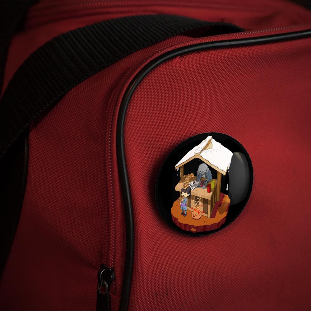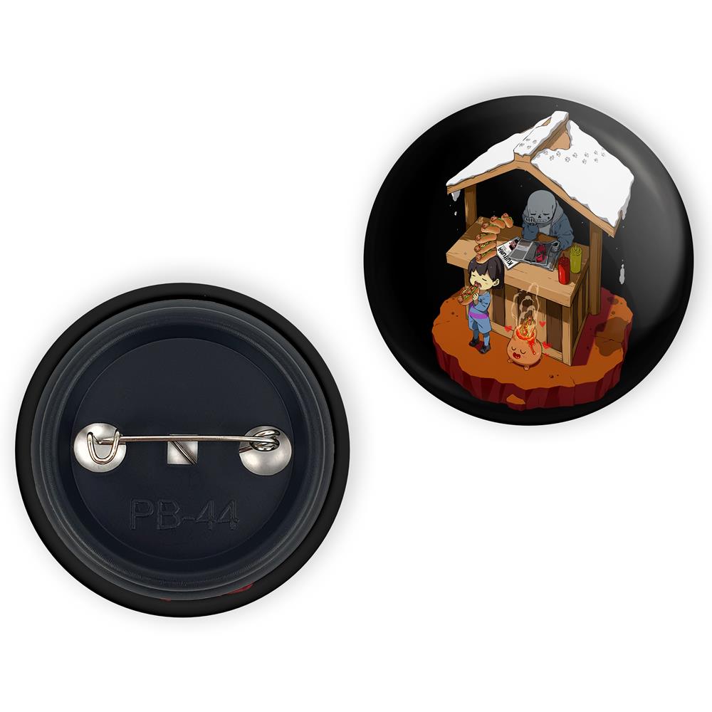 پیکسل 44 میلی متری بازی آندرتیل (Undertale)خندالو با روکش سلفون حرارتی مات مخملی ضدخش و قطعه پشتی رنگی تولید شده است. قطعات پلاستیکی پشت پیکسل با سوزن یک تکه ثابت و بدون لغزش و جا به جایی، ایستایی بسیار بهتری نسبت به پشتی فلزی پیکسل دارند که این مهم در تولید این محصول نیز رعایت شده است.