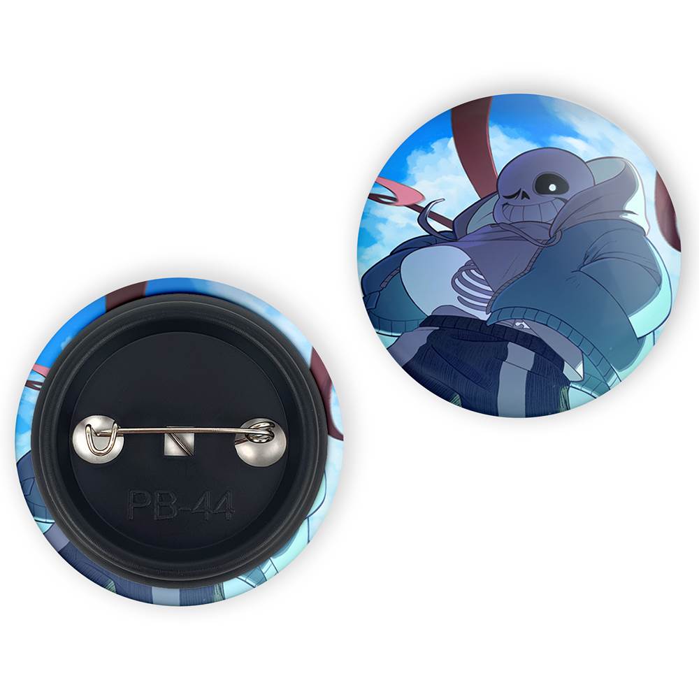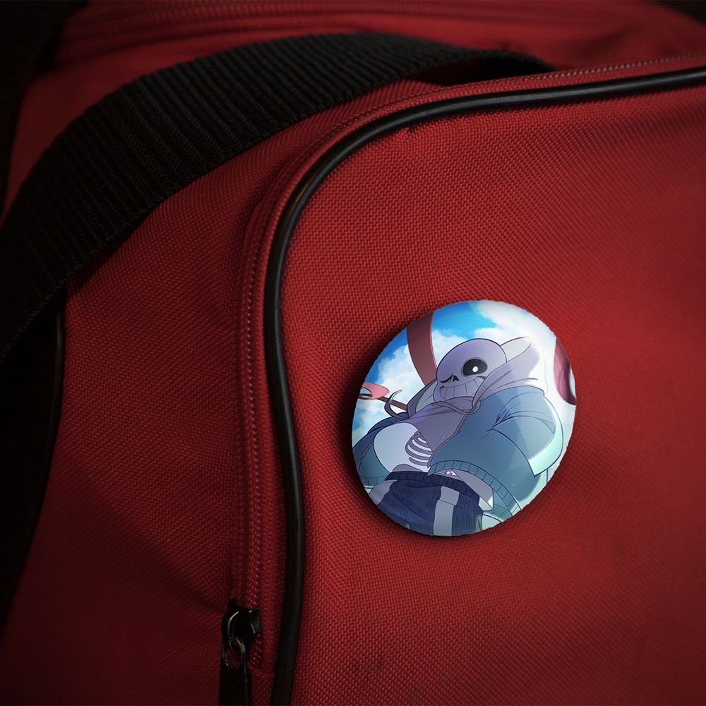 پیکسل 44 میلی متری بازی آندرتیل (Undertale)خندالو با روکش سلفون حرارتی مات مخملی ضدخش و قطعه پشتی رنگی تولید شده است. قطعات پلاستیکی پشت پیکسل با سوزن یک تکه ثابت و بدون لغزش و جا به جایی، ایستایی بسیار بهتری نسبت به پشتی فلزی پیکسل دارند که این مهم در تولید این محصول نیز رعایت شده است.