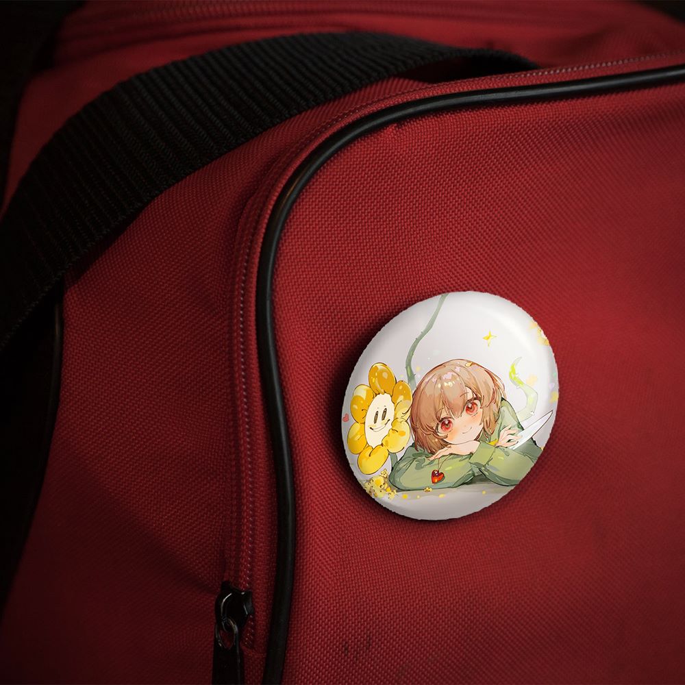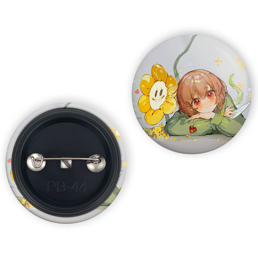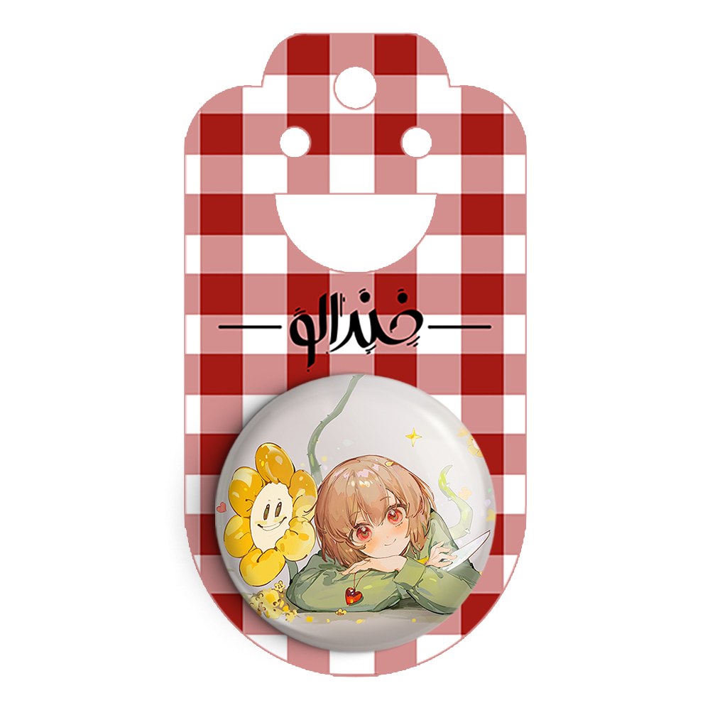 پیکسل 44 میلی متری بازی آندرتیل (Undertale)خندالو با روکش سلفون حرارتی مات مخملی ضدخش و قطعه پشتی رنگی تولید شده است. قطعات پلاستیکی پشت پیکسل با سوزن یک تکه ثابت و بدون لغزش و جا به جایی، ایستایی بسیار بهتری نسبت به پشتی فلزی پیکسل دارند که این مهم در تولید این محصول نیز رعایت شده است.