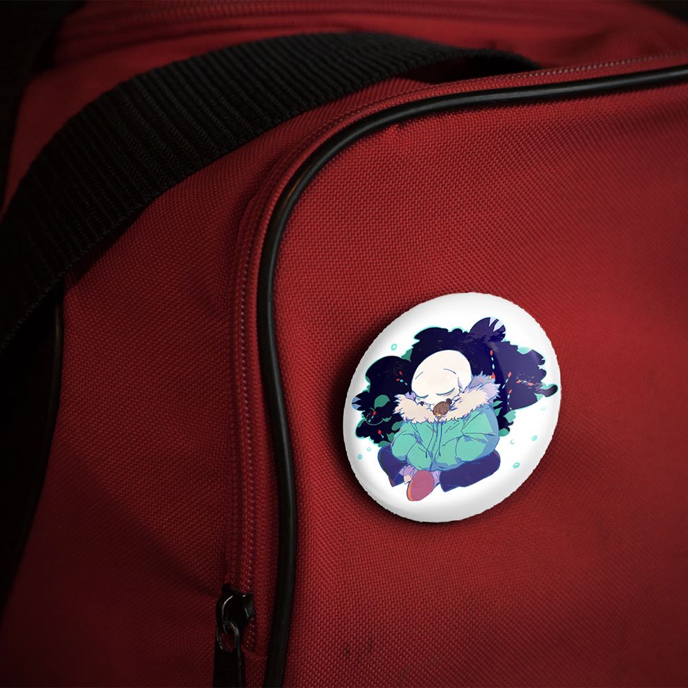 پیکسل 44 میلی متری بازی آندرتیل (Undertale)خندالو با روکش سلفون حرارتی مات مخملی ضدخش و قطعه پشتی رنگی تولید شده است. قطعات پلاستیکی پشت پیکسل با سوزن یک تکه ثابت و بدون لغزش و جا به جایی، ایستایی بسیار بهتری نسبت به پشتی فلزی پیکسل دارند که این مهم در تولید این محصول نیز رعایت شده است.