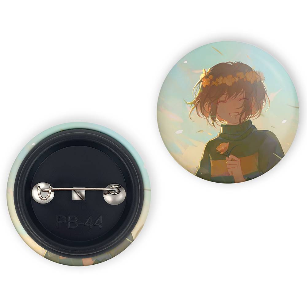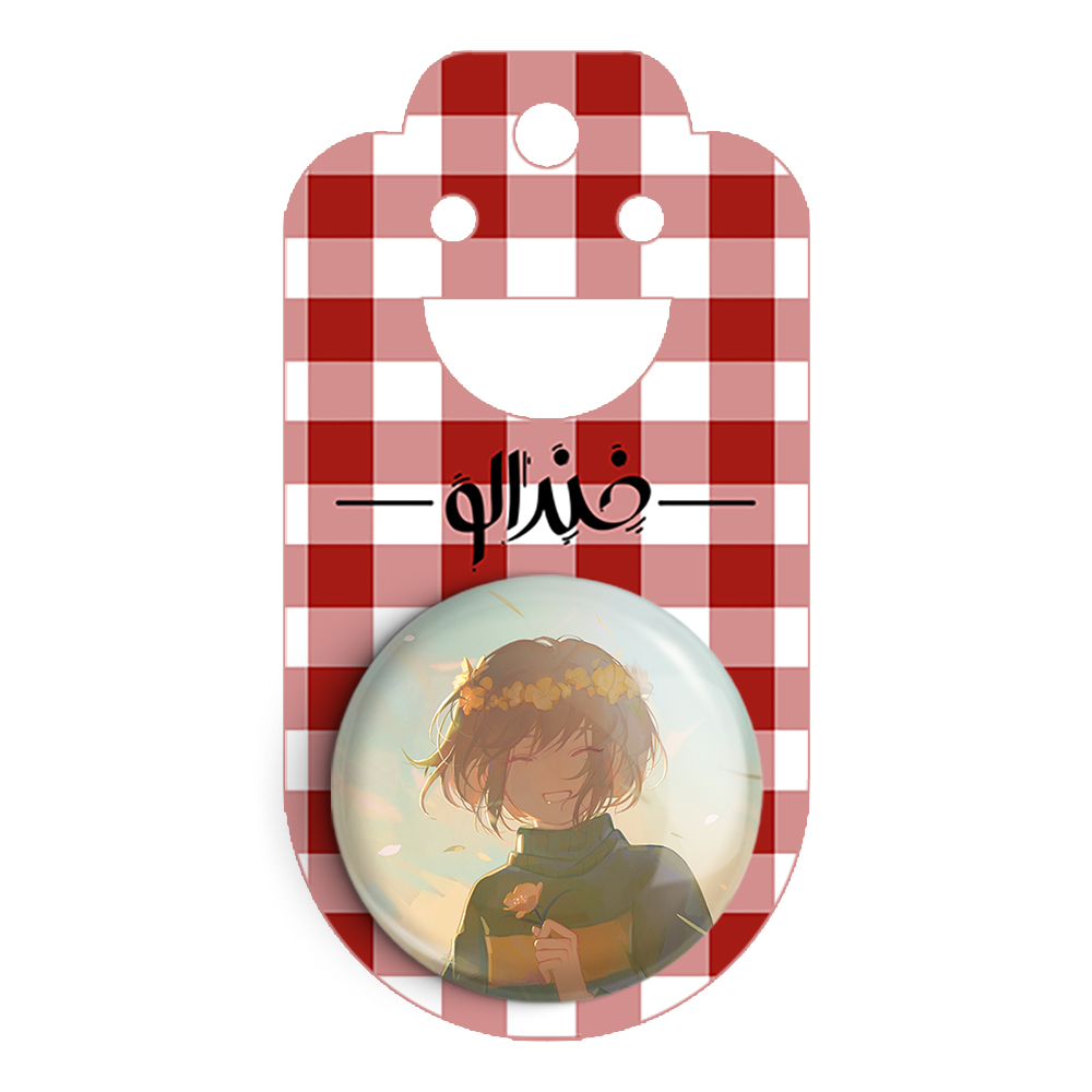 پیکسل 44 میلی متری بازی آندرتیل (Undertale)خندالو با روکش سلفون حرارتی مات مخملی ضدخش و قطعه پشتی رنگی تولید شده است. قطعات پلاستیکی پشت پیکسل با سوزن یک تکه ثابت و بدون لغزش و جا به جایی، ایستایی بسیار بهتری نسبت به پشتی فلزی پیکسل دارند که این مهم در تولید این محصول نیز رعایت شده است.