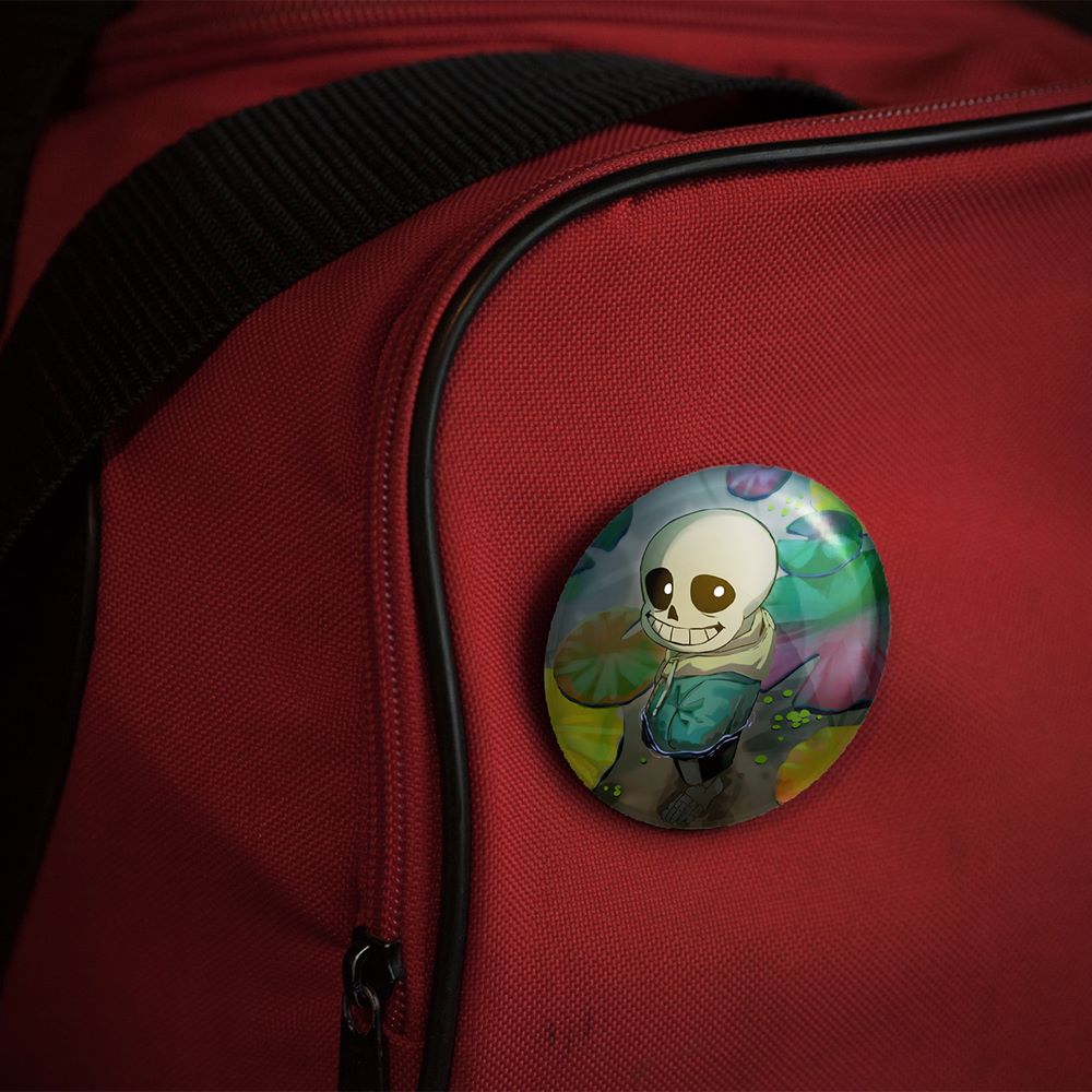 پیکسل 44 میلی متری بازی آندرتیل (Undertale)خندالو با روکش سلفون حرارتی مات مخملی ضدخش و قطعه پشتی رنگی تولید شده است. قطعات پلاستیکی پشت پیکسل با سوزن یک تکه ثابت و بدون لغزش و جا به جایی، ایستایی بسیار بهتری نسبت به پشتی فلزی پیکسل دارند که این مهم در تولید این محصول نیز رعایت شده است.