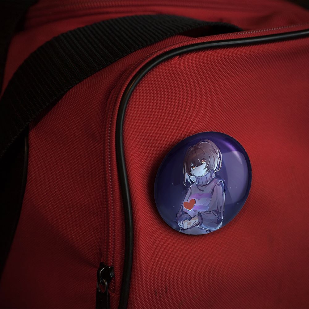 پیکسل 44 میلی متری بازی آندرتیل (Undertale)خندالو با روکش سلفون حرارتی مات مخملی ضدخش و قطعه پشتی رنگی تولید شده است. قطعات پلاستیکی پشت پیکسل با سوزن یک تکه ثابت و بدون لغزش و جا به جایی، ایستایی بسیار بهتری نسبت به پشتی فلزی پیکسل دارند که این مهم در تولید این محصول نیز رعایت شده است.