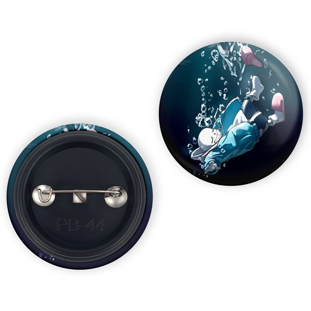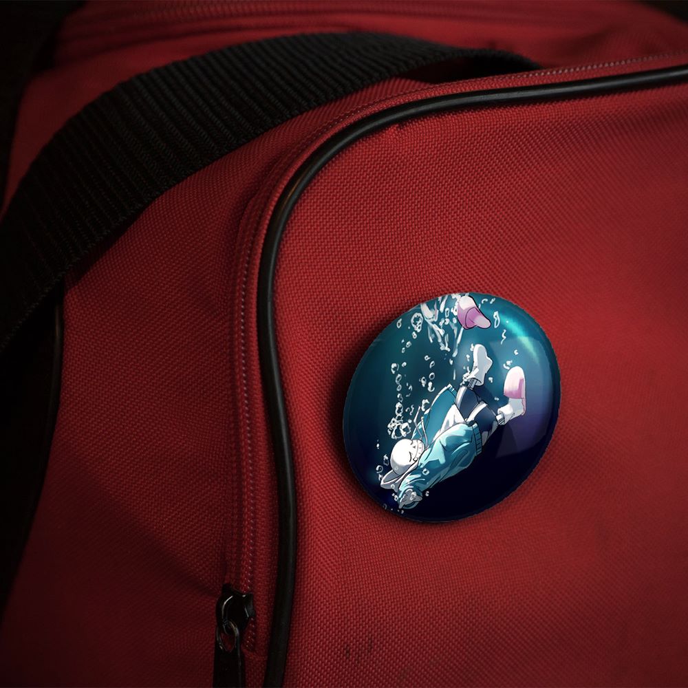 پیکسل 44 میلی متری بازی آندرتیل (Undertale)خندالو با روکش سلفون حرارتی مات مخملی ضدخش و قطعه پشتی رنگی تولید شده است. قطعات پلاستیکی پشت پیکسل با سوزن یک تکه ثابت و بدون لغزش و جا به جایی، ایستایی بسیار بهتری نسبت به پشتی فلزی پیکسل دارند که این مهم در تولید این محصول نیز رعایت شده است.
