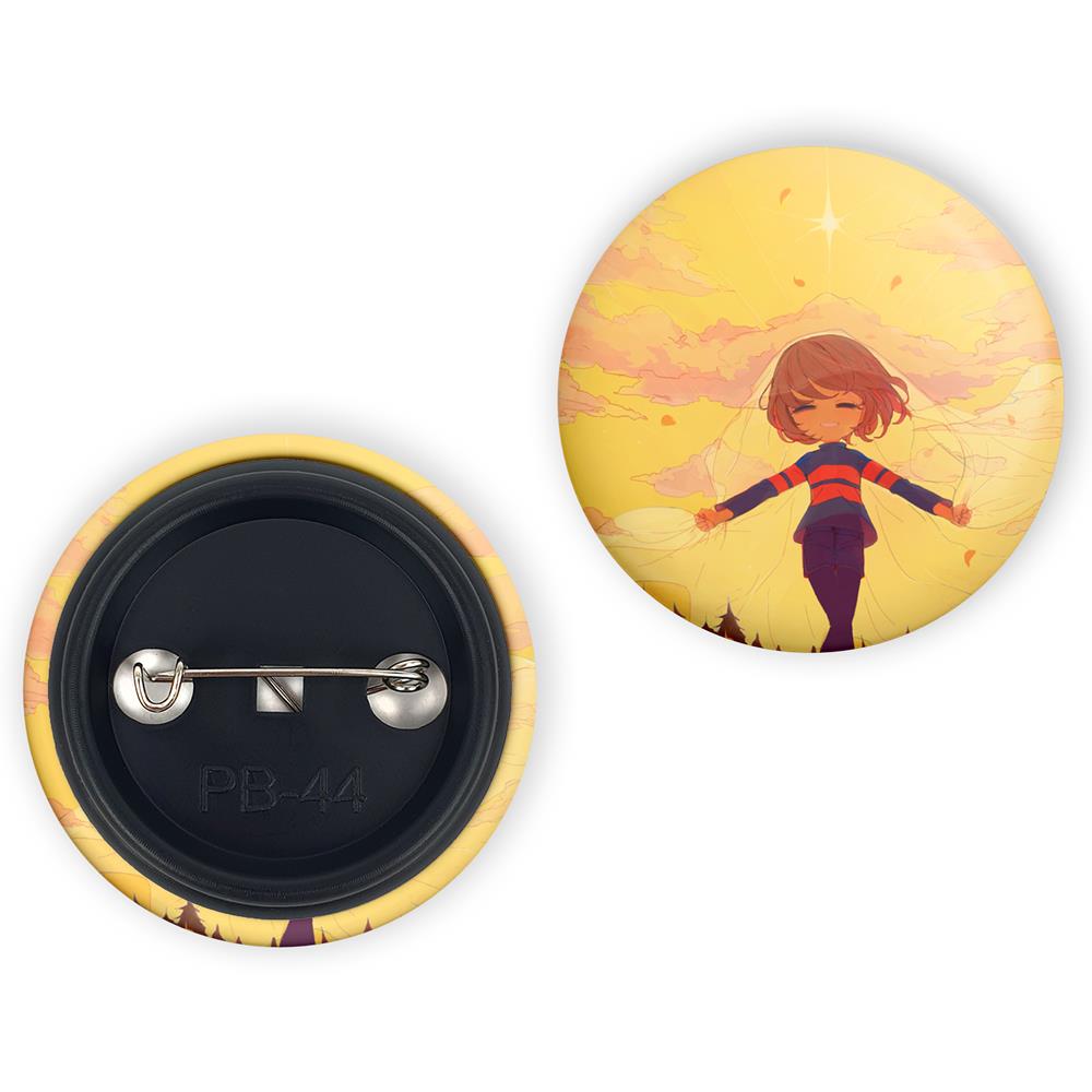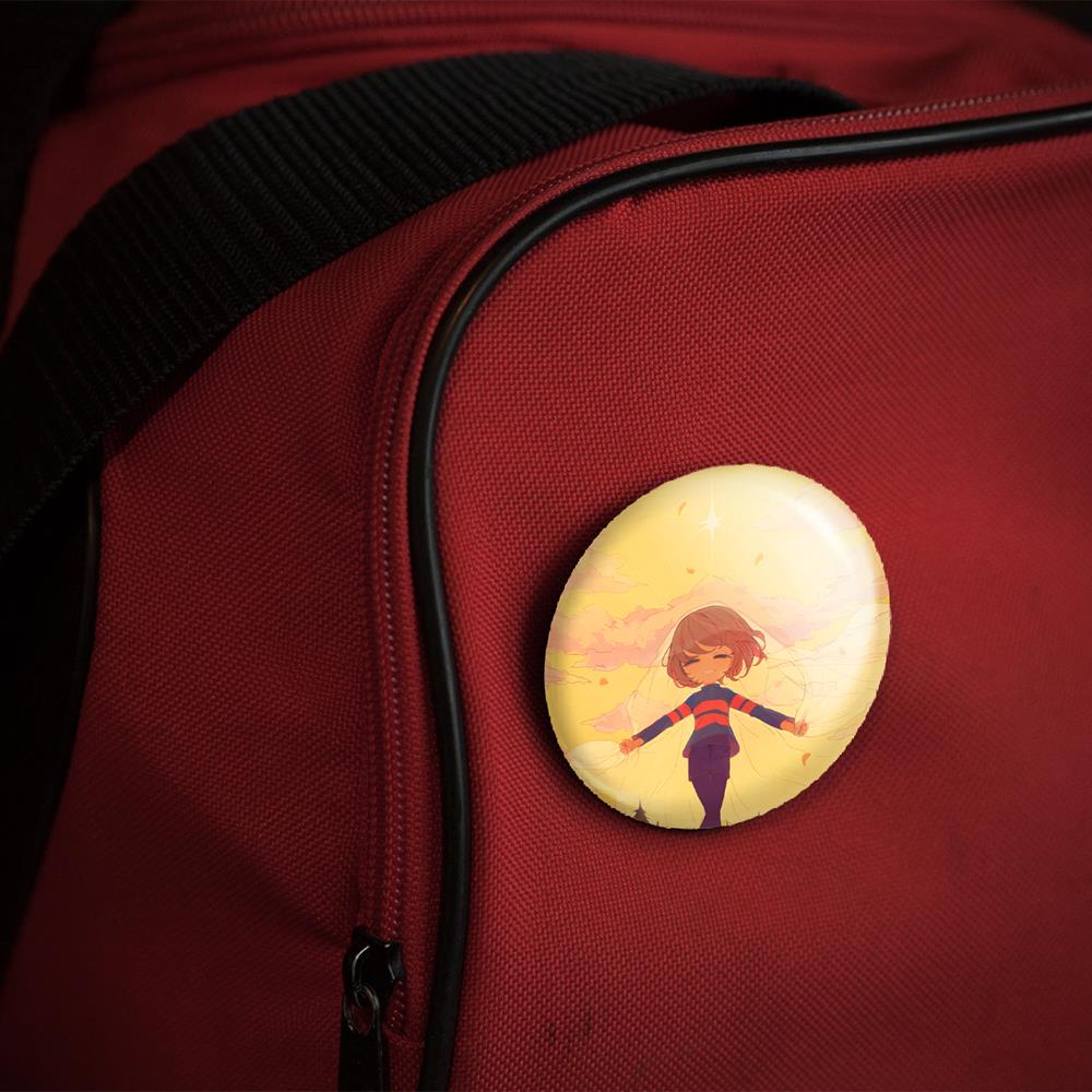 پیکسل 44 میلی متری بازی آندرتیل (Undertale)خندالو با روکش سلفون حرارتی مات مخملی ضدخش و قطعه پشتی رنگی تولید شده است. قطعات پلاستیکی پشت پیکسل با سوزن یک تکه ثابت و بدون لغزش و جا به جایی، ایستایی بسیار بهتری نسبت به پشتی فلزی پیکسل دارند که این مهم در تولید این محصول نیز رعایت شده است.