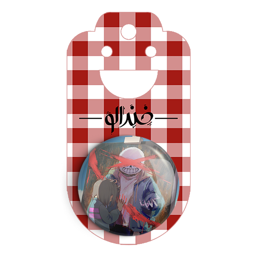 پیکسل 44 میلی متری بازی آندرتیل (Undertale)خندالو با روکش سلفون حرارتی مات مخملی ضدخش و قطعه پشتی رنگی تولید شده است. قطعات پلاستیکی پشت پیکسل با سوزن یک تکه ثابت و بدون لغزش و جا به جایی، ایستایی بسیار بهتری نسبت به پشتی فلزی پیکسل دارند که این مهم در تولید این محصول نیز رعایت شده است.