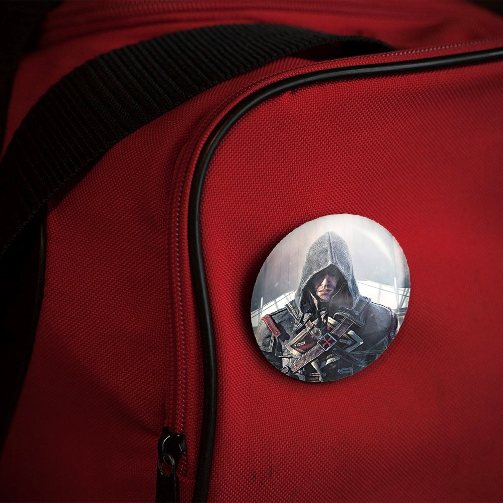 پیکسل 44 میلی متری بازی اساسینز کرید Assassin’s Creed خندالو با روکش سلفون حرارتی مات مخملی ضدخش و قطعه پشتی رنگی تولید شده است.پلاستیکی پشت پیکسل با سوزن یک تکه ثابت و بدون لغزش و جا به جایی، ایستایی بسیار بهتری نسبت به پشتی فلزی پیکسل دارند که این مهم در تولید این محصول نیز رعایت شده است.