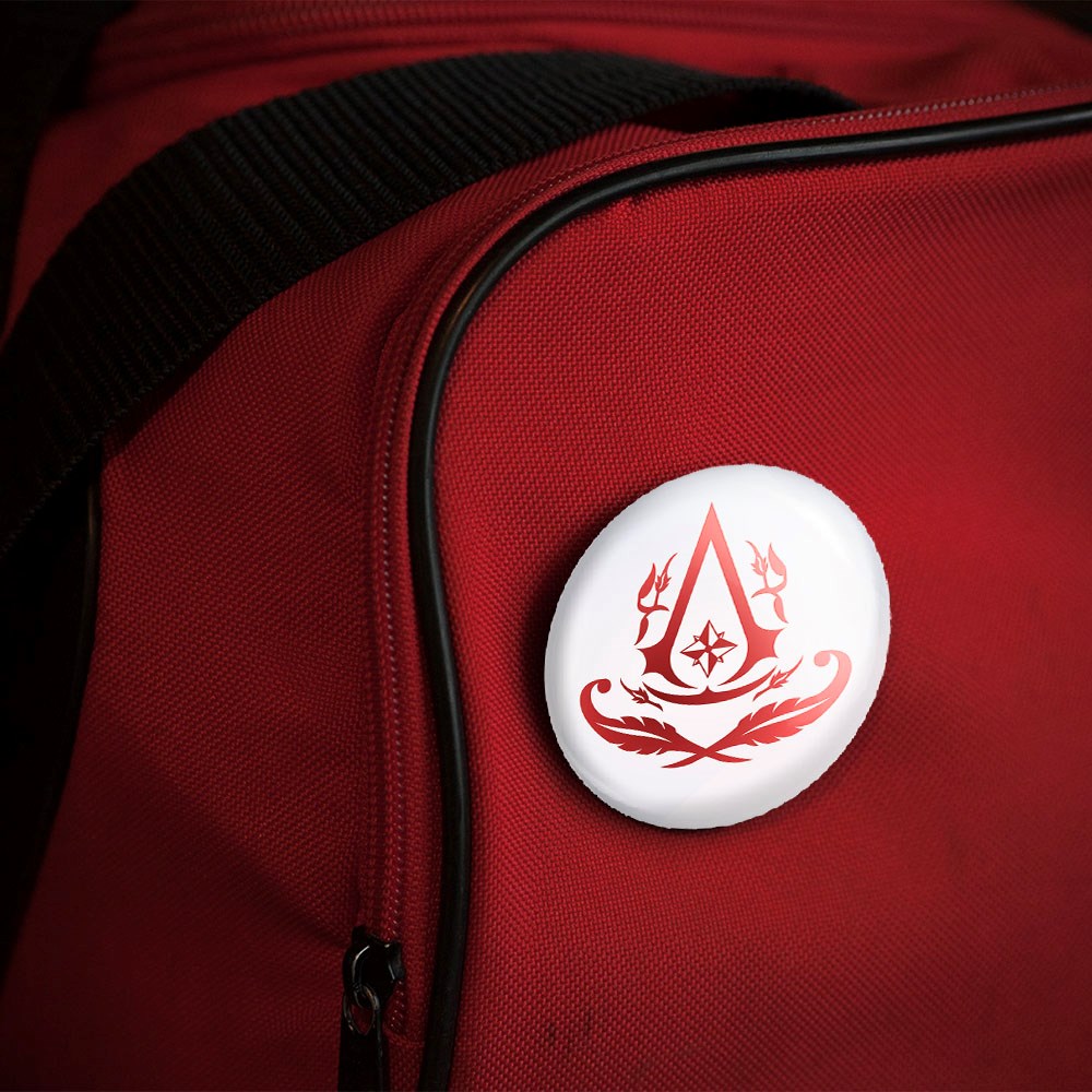 پیکسل 44 میلی متری بازی اساسینز کرید Assassin’s Creed خندالو با روکش سلفون حرارتی مات مخملی ضدخش و قطعه پشتی رنگی تولید شده است.پلاستیکی پشت پیکسل با سوزن یک تکه ثابت و بدون لغزش و جا به جایی، ایستایی بسیار بهتری نسبت به پشتی فلزی پیکسل دارند که این مهم در تولید این محصول نیز رعایت شده است.