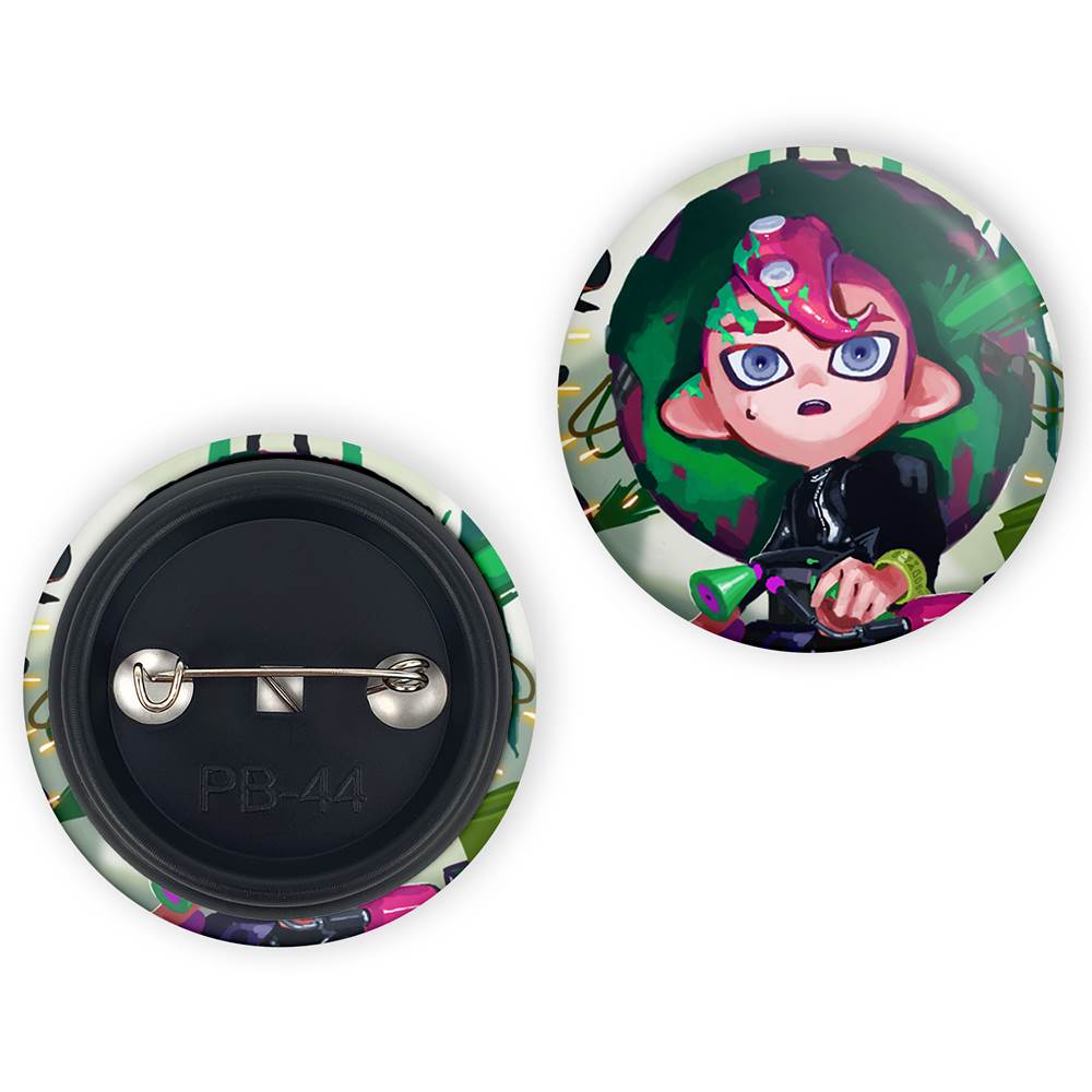 پیکسل 44 میلی متری بازی اسپلاتون (Splatoon)خندالو با روکش سلفون حرارتی مات مخملی ضدخش و قطعه پشتی رنگی تولید شده است. قطعات پلاستیکی پشت پیکسل با سوزن یک تکه ثابت و بدون لغزش و جا به جایی، ایستایی بسیار بهتری نسبت به پشتی فلزی پیکسل دارند که این مهم در تولید این محصول نیز رعایت شده است.