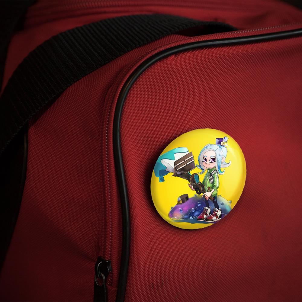 پیکسل 44 میلی متری بازی اسپلاتون (Splatoon)خندالو با روکش سلفون حرارتی مات مخملی ضدخش و قطعه پشتی رنگی تولید شده است. قطعات پلاستیکی پشت پیکسل با سوزن یک تکه ثابت و بدون لغزش و جا به جایی، ایستایی بسیار بهتری نسبت به پشتی فلزی پیکسل دارند که این مهم در تولید این محصول نیز رعایت شده است.