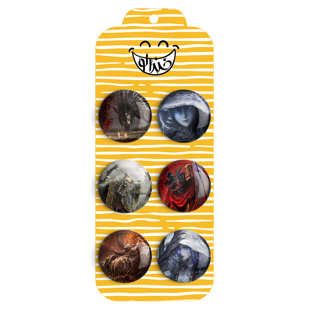 مجموعه 6 عددی پیکسل خندالو طرح بازی الدن رینگ (Elden Ring) با روکش سلفون حرارتی براق ضدخش و قطعه پشتی رنگی تولید شده است. قطعات پشتی از میان 6 رنگ سفید، مشکی، صورتی، زرد، آبی و قرمز که با توجه به نوع و رنگبندی طرح روی پیکسل انتخاب شده اند تولید می شود و در هر بسته بندی مطابق عکس محصول می باشد.