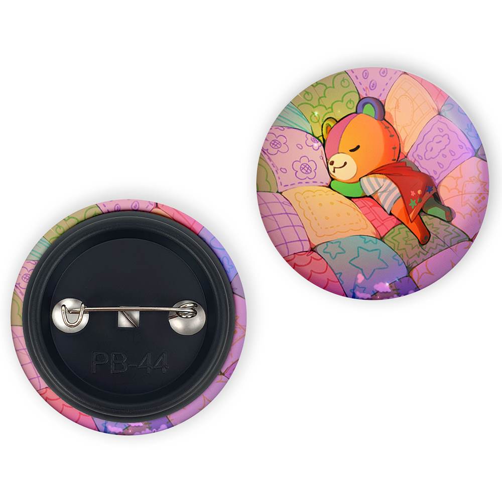 پیکسل 44 میلی متری بازی انیمال کراسینگ (Animal Crossing)خندالو با روکش سلفون حرارتی مات مخملی ضدخش و قطعه پشتی رنگی تولید شده است. قطعات پلاستیکی پشت پیکسل با سوزن یک تکه ثابت و بدون لغزش و جا به جایی، ایستایی بسیار بهتری نسبت به پشتی فلزی پیکسل دارند که این مهم در تولید این محصول نیز رعایت شده است.