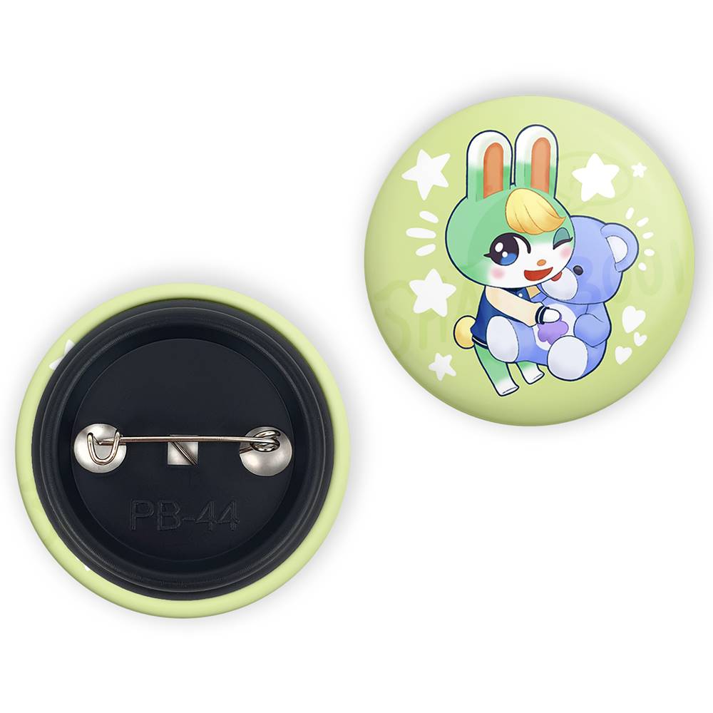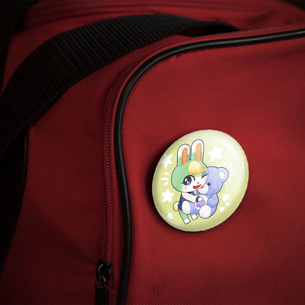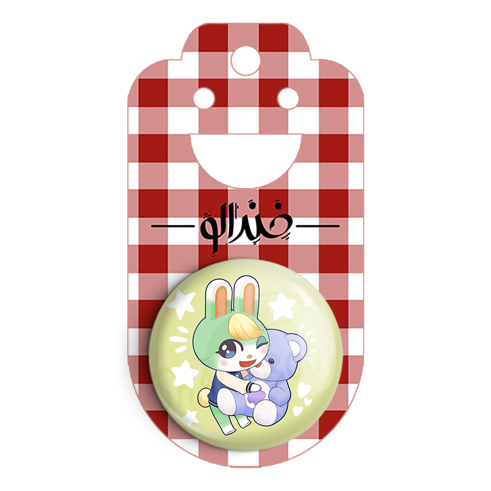 پیکسل 44 میلی متری بازی انیمال کراسینگ (Animal Crossing)خندالو با روکش سلفون حرارتی مات مخملی ضدخش و قطعه پشتی رنگی تولید شده است. قطعات پلاستیکی پشت پیکسل با سوزن یک تکه ثابت و بدون لغزش و جا به جایی، ایستایی بسیار بهتری نسبت به پشتی فلزی پیکسل دارند که این مهم در تولید این محصول نیز رعایت شده است.