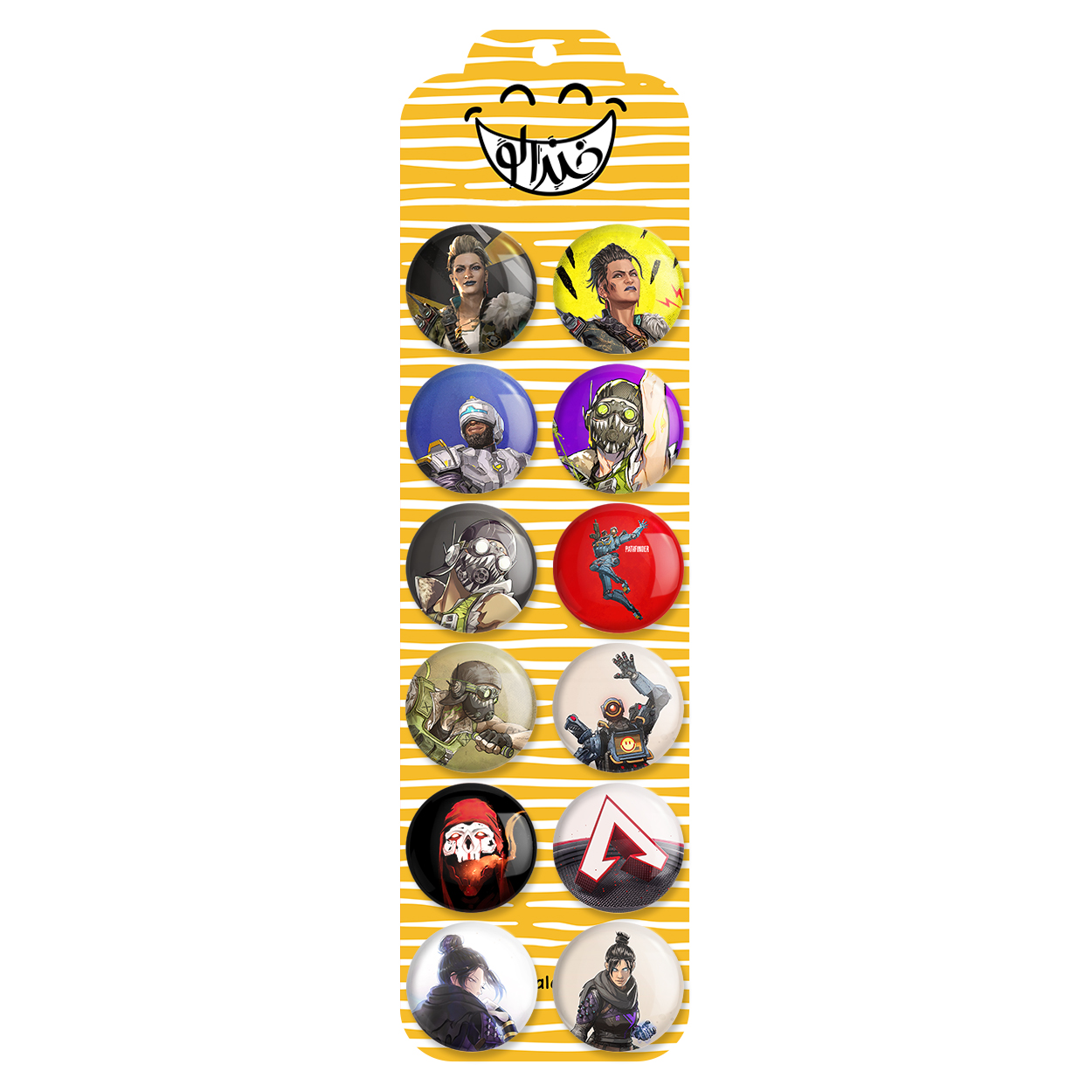 پک 12 عددی پیکسل خندالو طرح بازی اپکس لجندز (Apex Legends) با روکش سلفون حرارتی براق ضدخش و قطعه پشتی رنگی تولید شده است. قطعات پشتی از میان 6 رنگ سفید، مشکی، صورتی، زرد، آبی و قرمز که با توجه به نوع و رنگبندی طرح روی پیکسل انتخاب شده اند تولید می شود و در هر بسته بندی مطابق عکس محصول می باشد. قطعات پلاستیکی پشت پیکسل با سوزن یک تکه ثابت و بدون لغزش و جا به جایی، ایستایی بسیار بهتری نسبت به پشتی فلزی پیکسل دارند که این مهم در تولید این محصول نیز رعایت شده است.