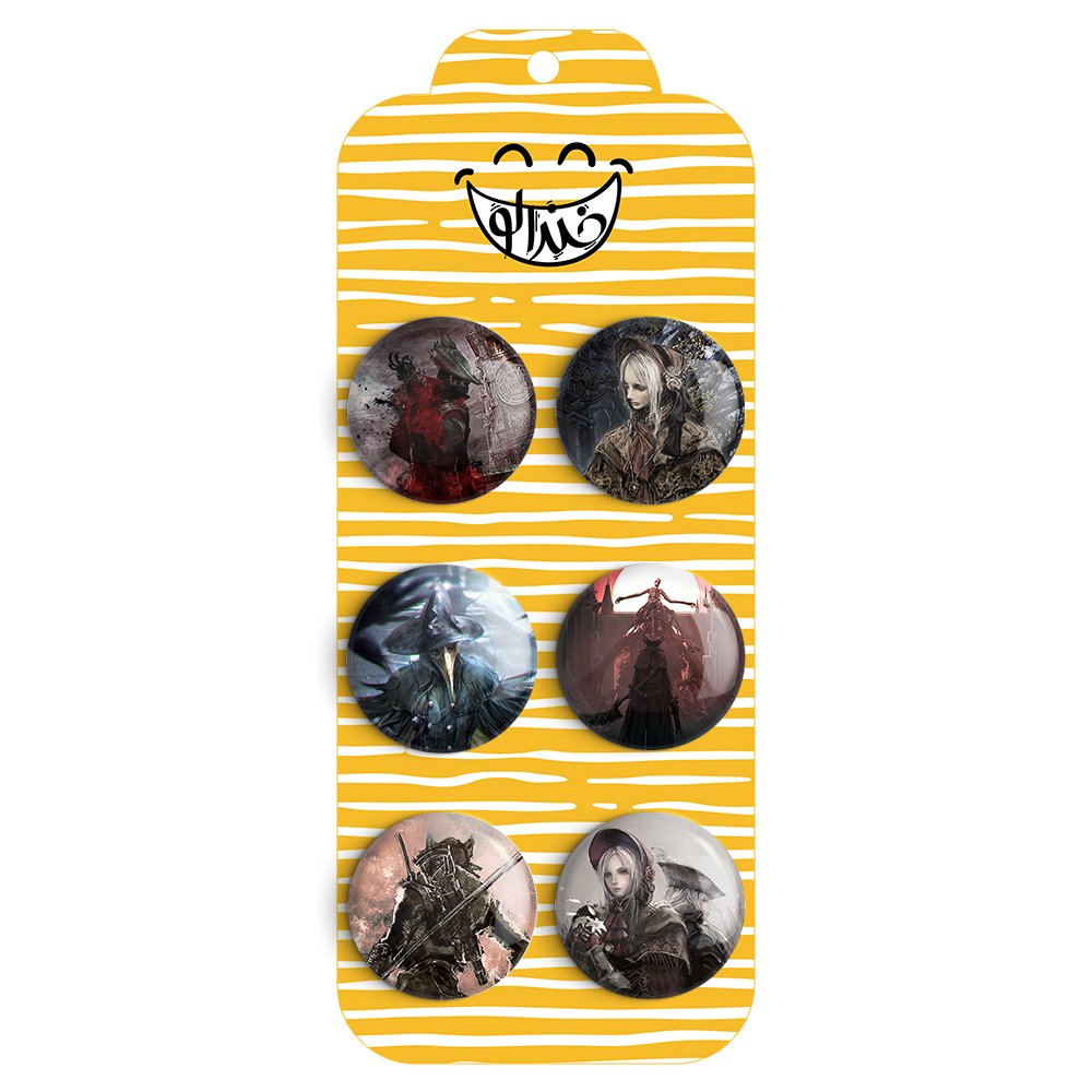 مجموعه 6 عددی پیکسل خندالو طرح بازی بلادبورن (Bloodborne) با روکش سلفون حرارتی براق ضدخش و قطعه پشتی رنگی تولید شده است. قطعات پشتی از میان 6 رنگ سفید، مشکی، صورتی، زرد، آبی و قرمز که با توجه به نوع و رنگبندی طرح روی پیکسل انتخاب شده اند تولید می شود و در هر بسته بندی مطابق عکس محصول می باشد.