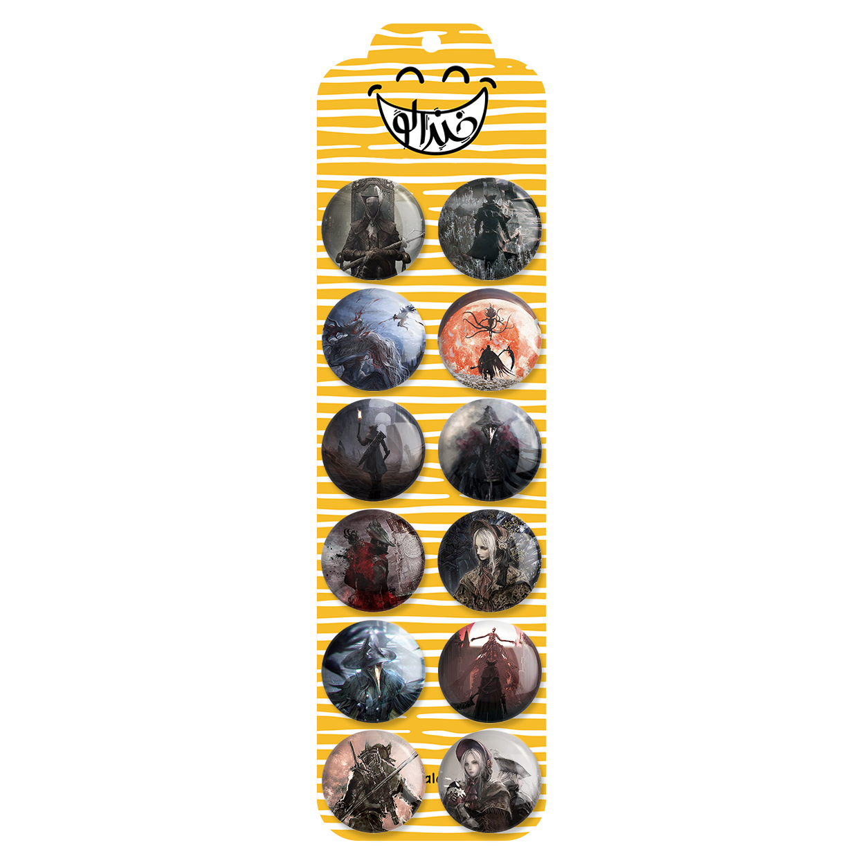 پک 12 عددی پیکسل خندالو طرح بازی بلادبورن (Bloodborne) با روکش سلفون حرارتی براق ضدخش و قطعه پشتی رنگی تولید شده است. قطعات پشتی از میان 6 رنگ سفید، مشکی، صورتی، زرد، آبی و قرمز که با توجه به نوع و رنگبندی طرح روی پیکسل انتخاب شده اند تولید می شود و در هر بسته بندی مطابق عکس محصول می باشد. قطعات پلاستیکی پشت پیکسل با سوزن یک تکه ثابت و بدون لغزش و جا به جایی، ایستایی بسیار بهتری نسبت به پشتی فلزی پیکسل دارند که این مهم در تولید این محصول نیز رعایت شده است.