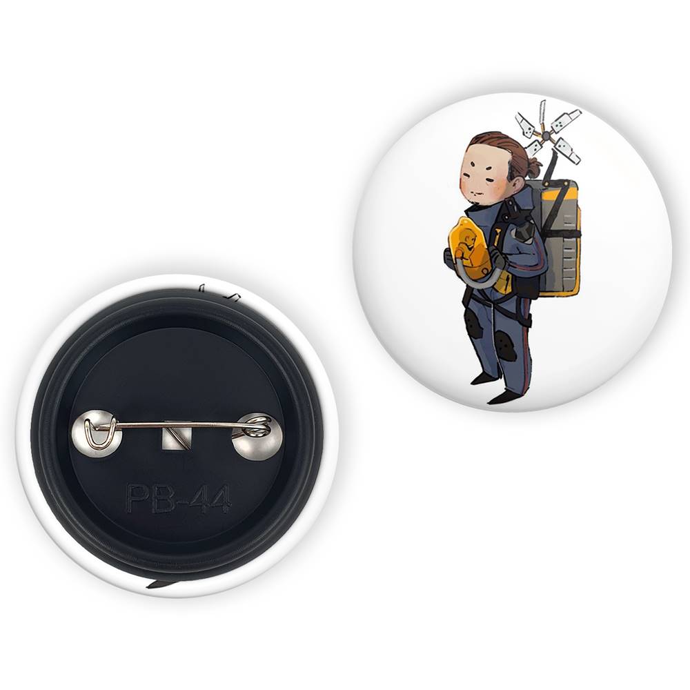پیکسل 44 میلی متری بازی دث استرندینگ (Death Stranding)خندالو با روکش سلفون حرارتی مات مخملی ضدخش و قطعه پشتی رنگی تولید شده است. قطعات پلاستیکی پشت پیکسل با سوزن یک تکه ثابت و بدون لغزش و جا به جایی، ایستایی بسیار بهتری نسبت به پشتی فلزی پیکسل دارند که این مهم در تولید این محصول نیز رعایت شده است.