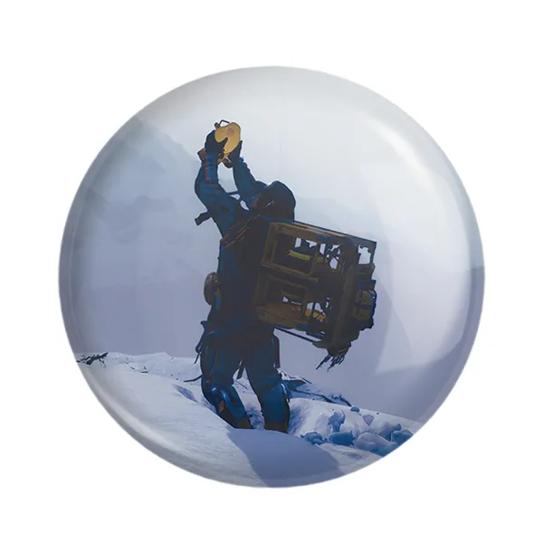 پیکسل 44 میلی متری بازی دث استرندینگ (Death Stranding)خندالو با روکش سلفون حرارتی مات مخملی ضدخش و قطعه پشتی رنگی تولید شده است. قطعات پلاستیکی پشت پیکسل با سوزن یک تکه ثابت و بدون لغزش و جا به جایی، ایستایی بسیار بهتری نسبت به پشتی فلزی پیکسل دارند که این مهم در تولید این محصول نیز رعایت شده است.