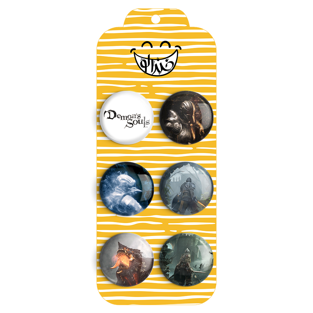 مجموعه 6 عددی پیکسل خندالو طرح بازی دیمنز سولز (Demon’s Souls) با روکش سلفون حرارتی براق ضدخش و قطعه پشتی رنگی تولید شده است. قطعات پشتی از میان 6 رنگ سفید، مشکی، صورتی، زرد، آبی و قرمز که با توجه به نوع و رنگبندی طرح روی پیکسل انتخاب شده اند تولید می شود و در هر بسته بندی مطابق عکس محصول می باشد.