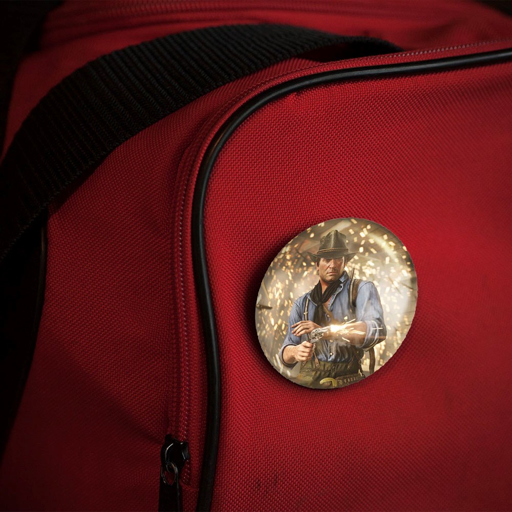 پیکسل 44 میلی متری بازی رد دد Red Dead خندالو با روکش سلفون حرارتی مات مخملی ضدخش و قطعه پشتی رنگی تولید شده است.پلاستیکی پشت پیکسل با سوزن یک تکه ثابت و بدون لغزش و جا به جایی، ایستایی بسیار بهتری نسبت به پشتی فلزی پیکسل دارند که این مهم در تولید این محصول نیز رعایت شده است.