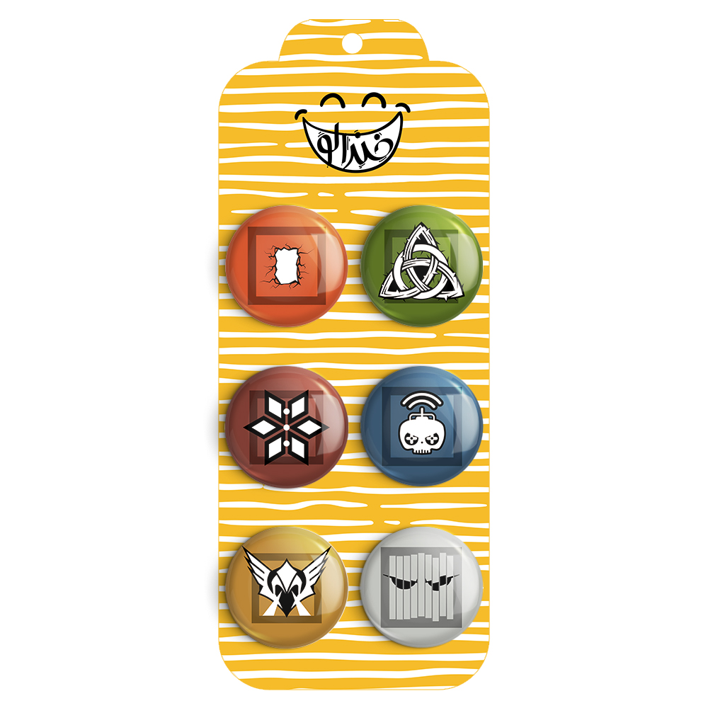 مجموعه 6 عددی پیکسل خندالو طرح بازی رینبو سیکس سیج (Rainbow Six Siege) با روکش سلفون حرارتی براق ضدخش و قطعه پشتی رنگی تولید شده است. قطعات پشتی از میان 6 رنگ سفید، مشکی، صورتی، زرد، آبی و قرمز که با توجه به نوع و رنگبندی طرح روی پیکسل انتخاب شده اند تولید می شود و در هر بسته بندی مطابق عکس محصول می باشد.