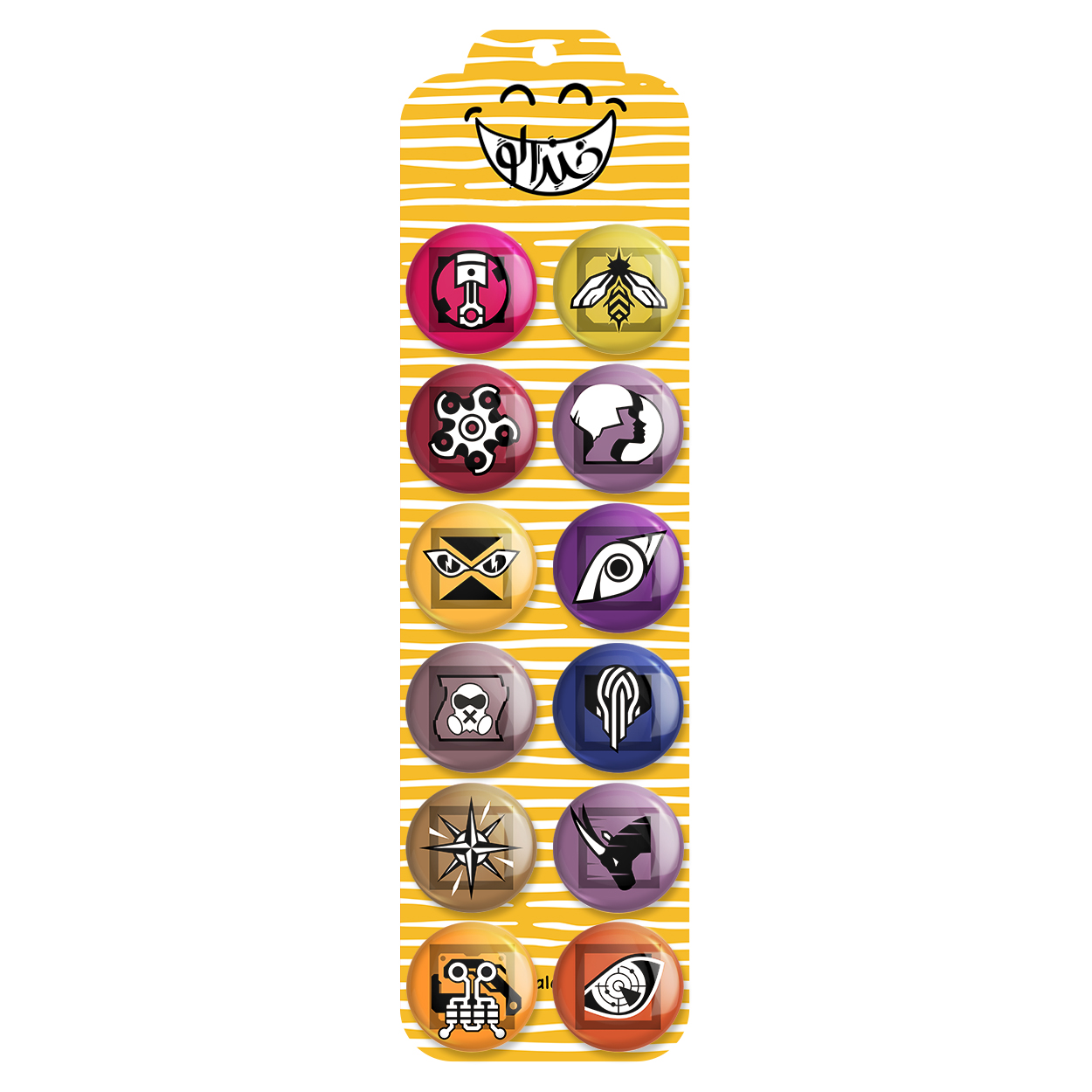 پک 12 عددی پیکسل خندالو طرح بازی رینبو سیکس سیج (Rainbow Six Siege) با روکش سلفون حرارتی براق ضدخش و قطعه پشتی رنگی تولید شده است. قطعات پشتی از میان 6 رنگ سفید، مشکی، صورتی، زرد، آبی و قرمز که با توجه به نوع و رنگبندی طرح روی پیکسل انتخاب شده اند تولید می شود و در هر بسته بندی مطابق عکس محصول می باشد. قطعات پلاستیکی پشت پیکسل با سوزن یک تکه ثابت و بدون لغزش و جا به جایی، ایستایی بسیار بهتری نسبت به پشتی فلزی پیکسل دارند که این مهم در تولید این محصول نیز رعایت شده است.