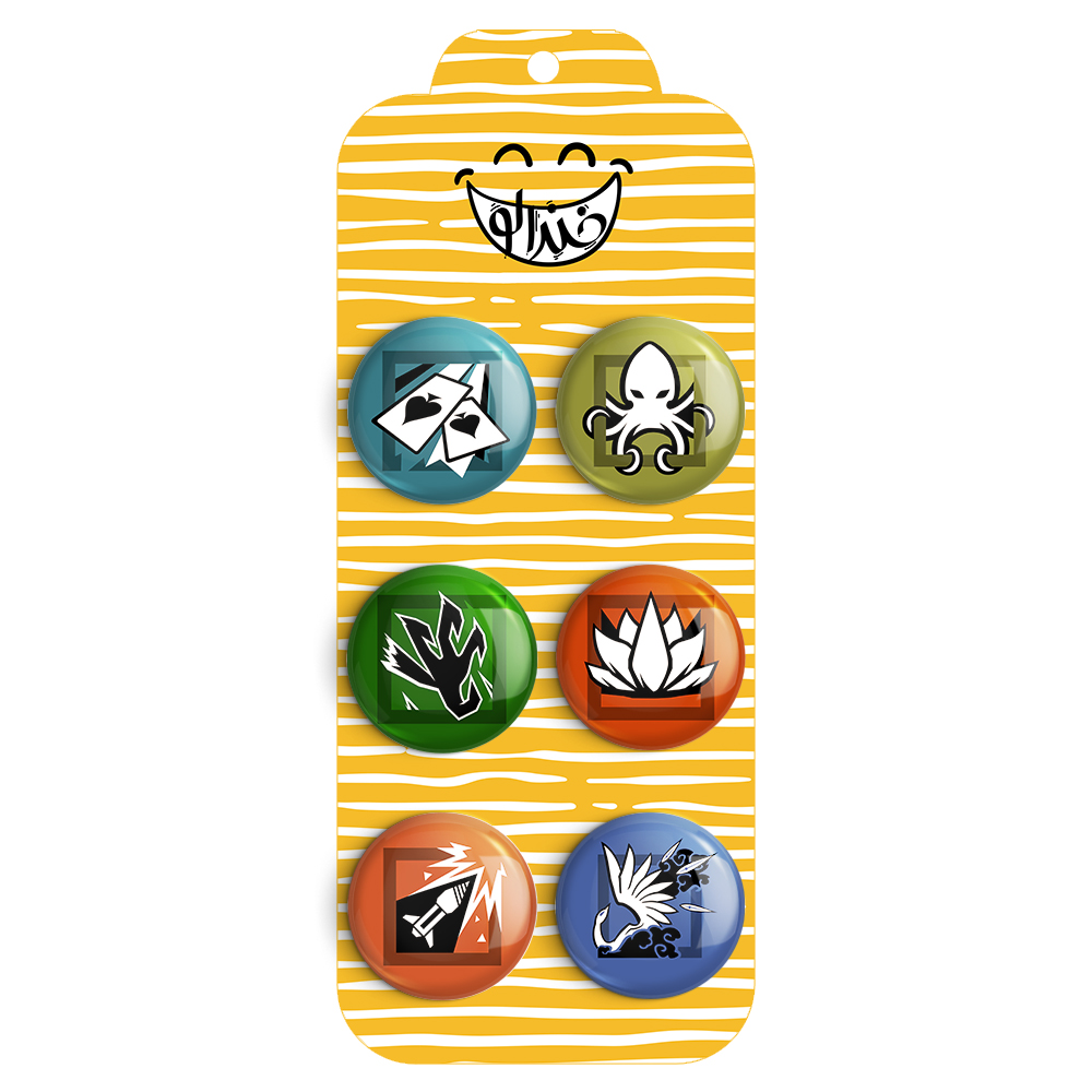 مجموعه 6 عددی پیکسل خندالو طرح بازی رینبو سیکس سیج (Rainbow Six Siege) با روکش سلفون حرارتی براق ضدخش و قطعه پشتی رنگی تولید شده است. قطعات پشتی از میان 6 رنگ سفید، مشکی، صورتی، زرد، آبی و قرمز که با توجه به نوع و رنگبندی طرح روی پیکسل انتخاب شده اند تولید می شود و در هر بسته بندی مطابق عکس محصول می باشد.