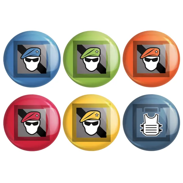 مجموعه 6 عددی پیکسل خندالو طرح بازی رینبو سیکس سیج (Rainbow Six Siege) با روکش سلفون حرارتی براق ضدخش و قطعه پشتی رنگی تولید شده است. قطعات پشتی از میان 6 رنگ سفید، مشکی، صورتی، زرد، آبی و قرمز که با توجه به نوع و رنگبندی طرح روی پیکسل انتخاب شده اند تولید می شود و در هر بسته بندی مطابق عکس محصول می باشد.
