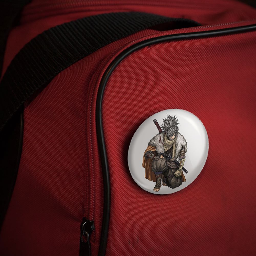 پیکسل 44 میلی متری بازی سکیرو (sekiro)خندالو با روکش سلفون حرارتی مات مخملی ضدخش و قطعه پشتی رنگی تولید شده است. قطعات پلاستیکی پشت پیکسل با سوزن یک تکه ثابت و بدون لغزش و جا به جایی، ایستایی بسیار بهتری نسبت به پشتی فلزی پیکسل دارند که این مهم در تولید این محصول نیز رعایت شده است.