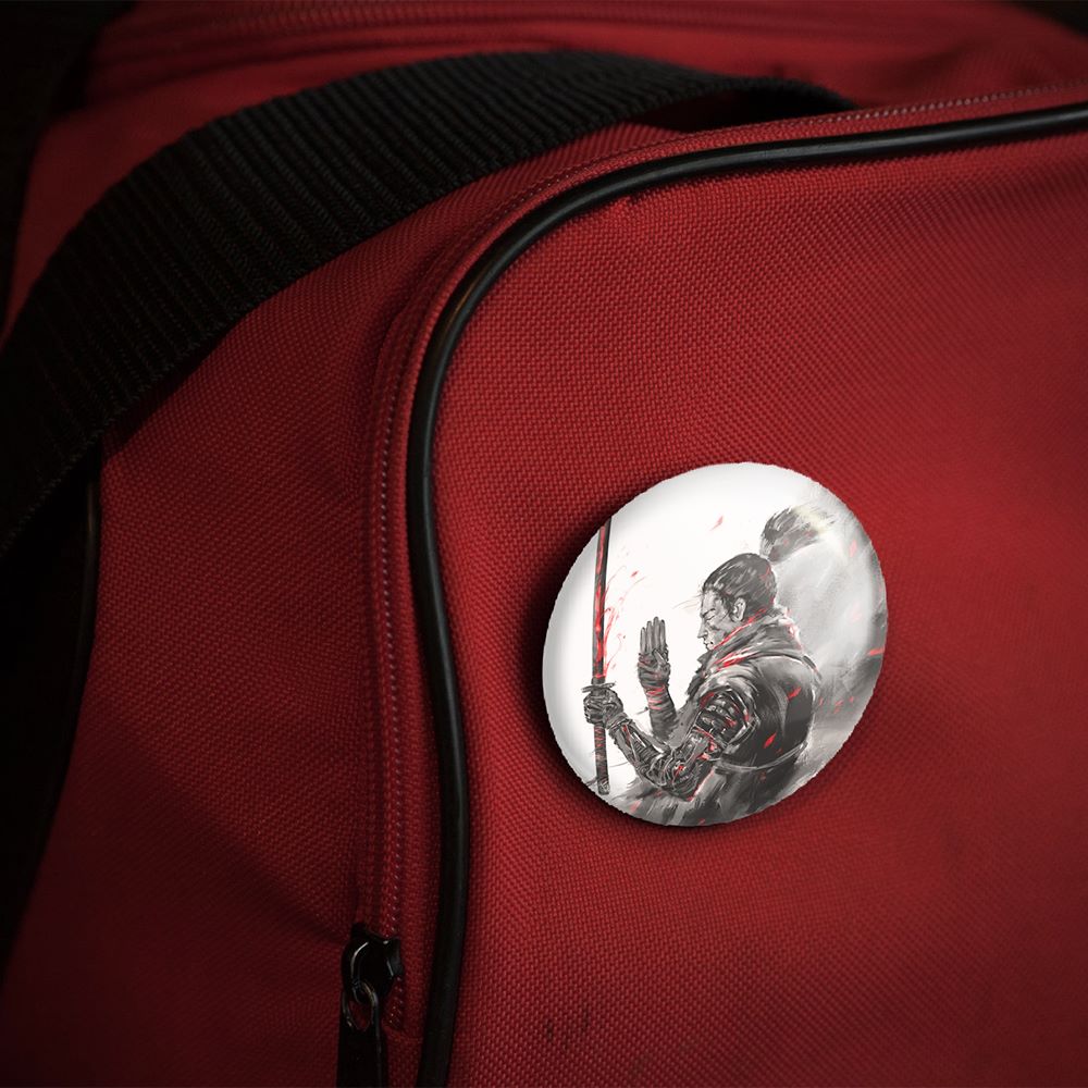پیکسل 44 میلی متری بازی سکیرو (sekiro)خندالو با روکش سلفون حرارتی مات مخملی ضدخش و قطعه پشتی رنگی تولید شده است. قطعات پلاستیکی پشت پیکسل با سوزن یک تکه ثابت و بدون لغزش و جا به جایی، ایستایی بسیار بهتری نسبت به پشتی فلزی پیکسل دارند که این مهم در تولید این محصول نیز رعایت شده است.
