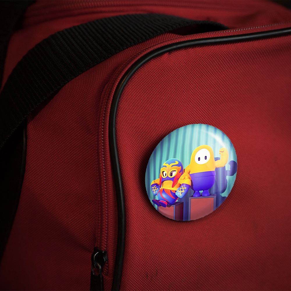 پیکسل 44 میلی متری بازی فال گایز (Fall Guys)خندالو با روکش سلفون حرارتی مات مخملی ضدخش و قطعه پشتی رنگی تولید شده است. قطعات پلاستیکی پشت پیکسل با سوزن یک تکه ثابت و بدون لغزش و جا به جایی، ایستایی بسیار بهتری نسبت به پشتی فلزی پیکسل دارند که این مهم در تولید این محصول نیز رعایت شده است.