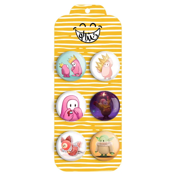 مجموعه 6 عددی پیکسل خندالو طرح بازی فال گایز (Fall Guys) با روکش سلفون حرارتی براق ضدخش و قطعه پشتی رنگی تولید شده است. قطعات پشتی از میان 6 رنگ سفید، مشکی، صورتی، زرد، آبی و قرمز که با توجه به نوع و رنگبندی طرح روی پیکسل انتخاب شده اند تولید می شود و در هر بسته بندی مطابق عکس محصول می باشد.